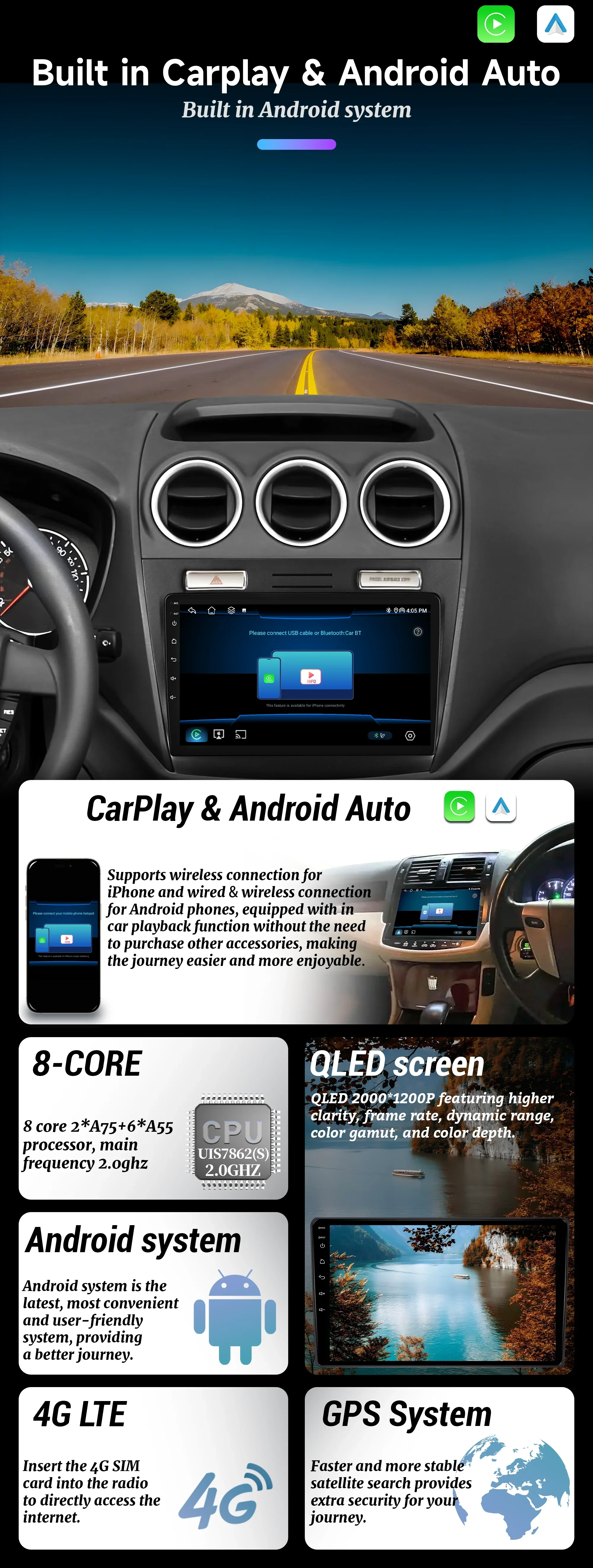 - 1280 x 720 IPS touch screen,Support 4K HD video(Only 4G version is supported), split screen, PIP function.