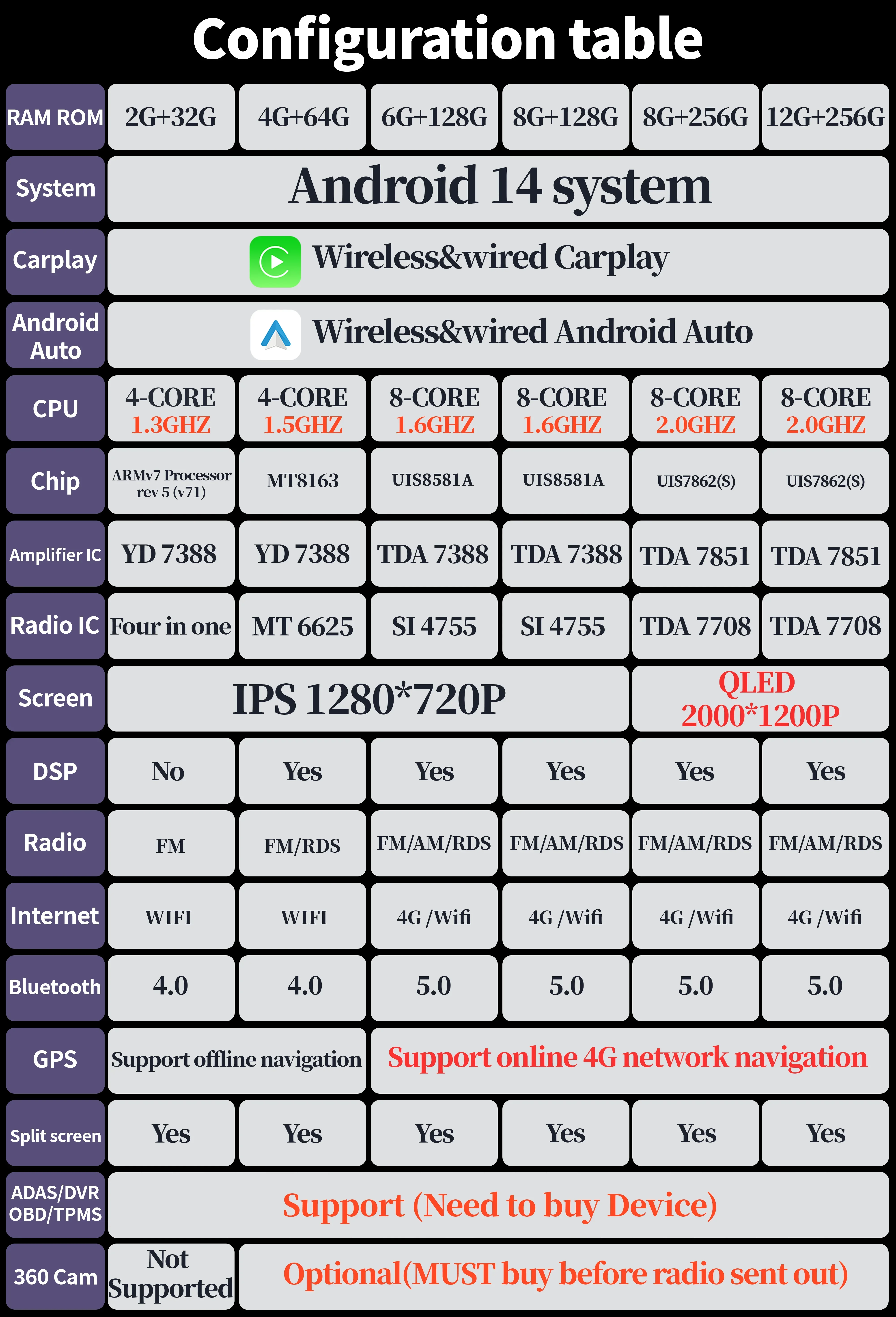 - 2+32G/4+64G Only support FM,6+128G/8+256G support FM/AM