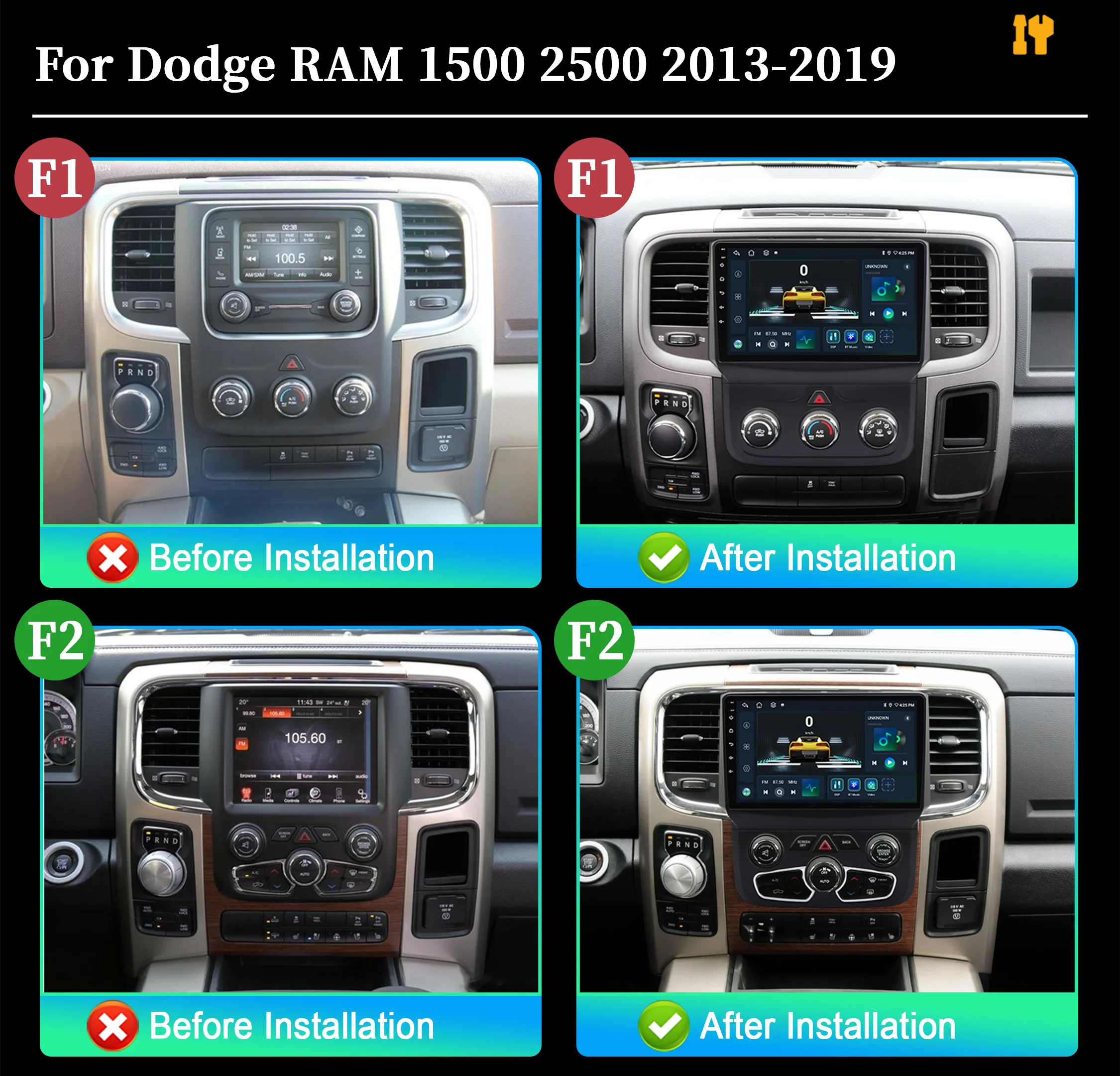 For Dodge RAM 1500 2500 2013-2019 Android 14 Multimedia Navigation Stereo Car Radio Wireless Carplay 2K QLED Head Unit Screen
