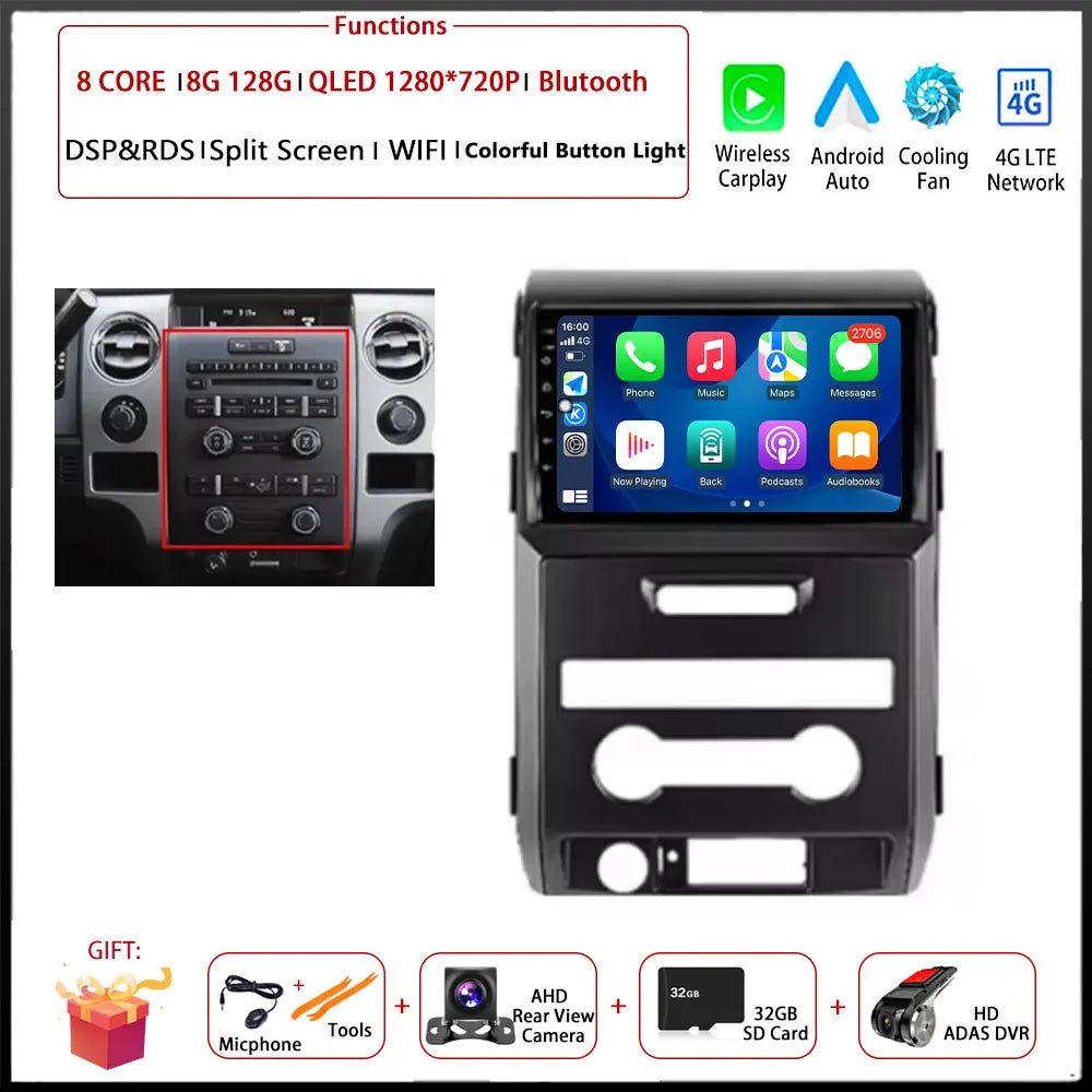 For Ford F150 P415 Raptor 2008 - 2014 Car FM/AM DSP 4G Android OS Carplay Auto WIFI Radio Stereo Multimedia Player 2din BT 5.0