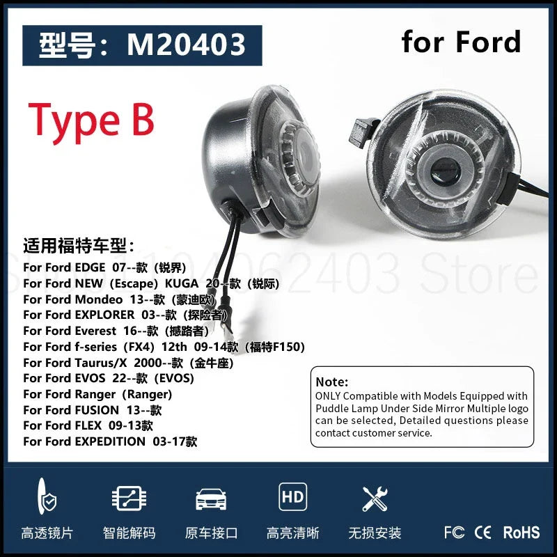 For Ford rearview mirror welcome projection LED lights Fox Explorer Edge Edge Mondeo Escape