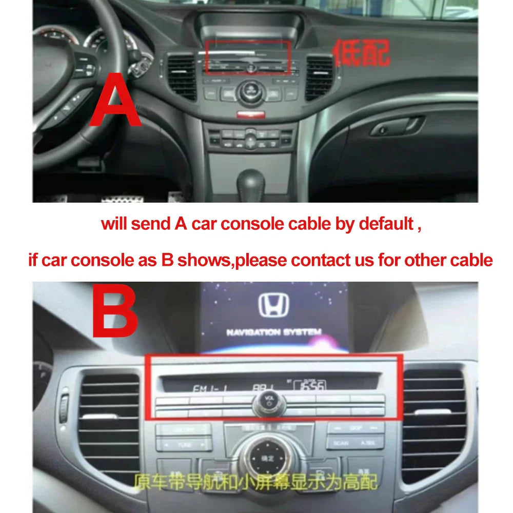A and B will require different cable and canbus,will send A cable and canbus by default,if your car console its just as b shows,please leave us a message when you place an order ,thanks!