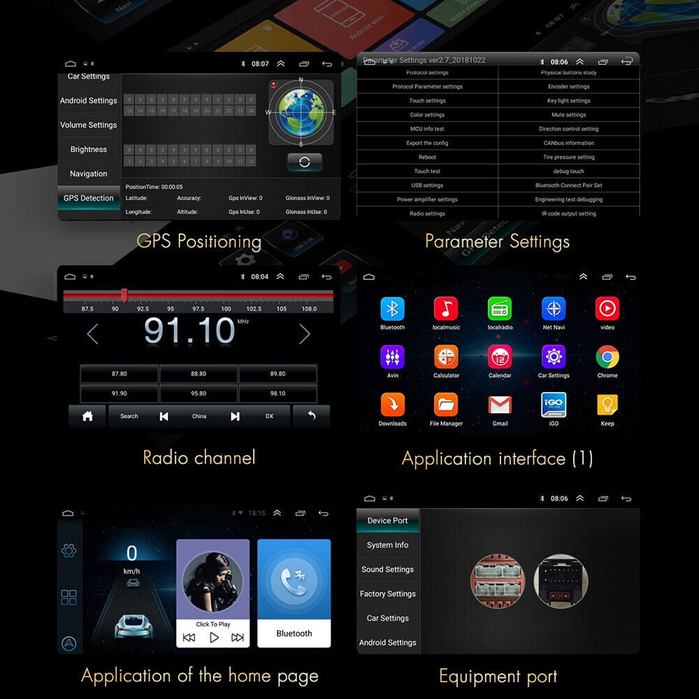 Specification: System: Android 12.0 Screen size: 9 inches Memory: 2GB ROM: 32GB Radio chip: MT6625 Steering wheel control features: Supported, including Canbus Functions with additional adapters: DAB+, OBD2, DVR, TPMS, microphone (additional purchase required, not included) Factory setup keywords: 8888 Split screen: Supported Apple Carplay: wireless and wired Android Auto: wireless and wired Sound effect: Support EQ and HIFI adjustment Screen type: IPS touch capacitive screen CPU: 4-core, 8227L, 1.3GHZ Screen resolution: 1024*600 Power output: 4*45W Network: Support WIFI hotspot connection USB port: 2 USB inputs on the back Navigation: Support online/offline GPS free map Radio band: FM/RDS Bluetooth 4.2: support BT A2DP/BT hands-free/BT address book/BT music Installation method: plug and p