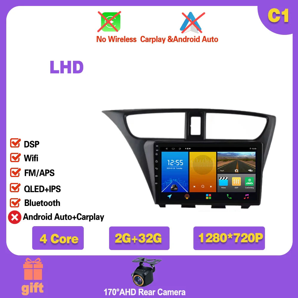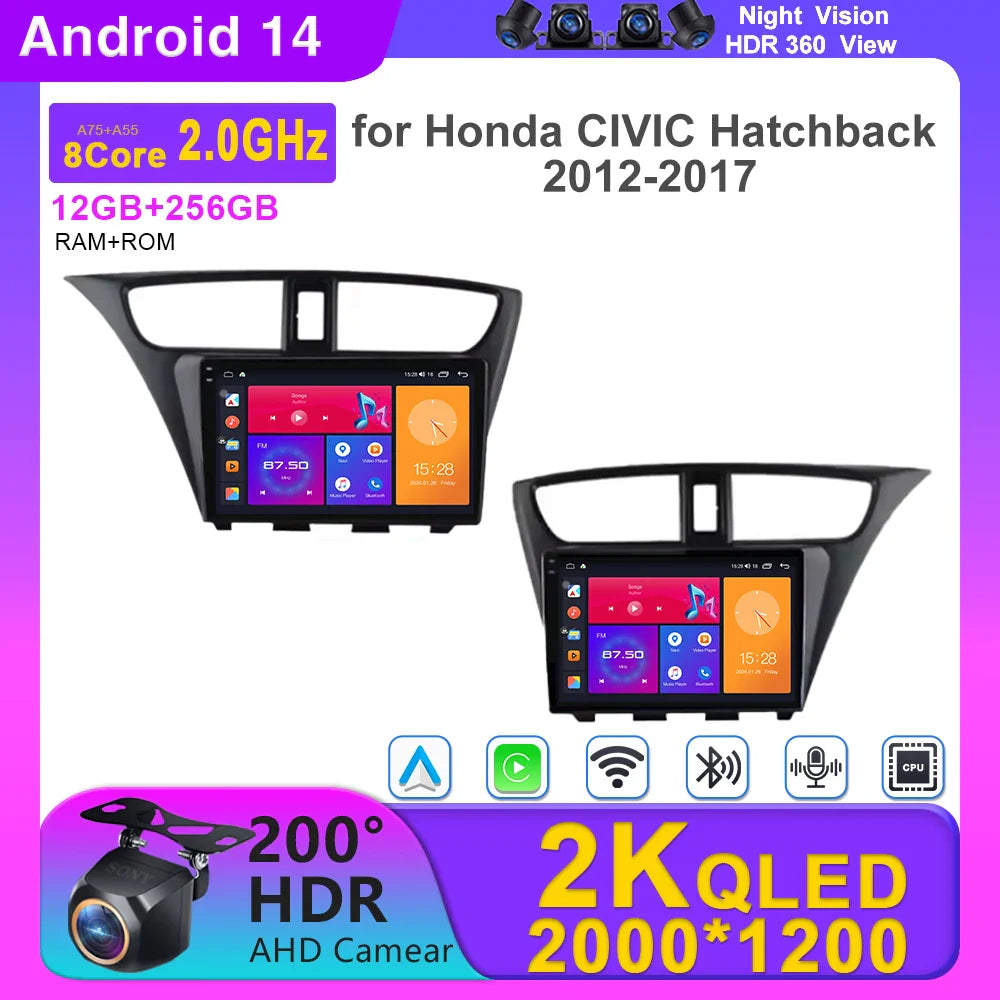 For Honda CIVIC Hatchback 2012-2017 Android 14 GPS Qualcomm Snapdragon high-performance Car Radio stereo multimedia player Ferrari Android host