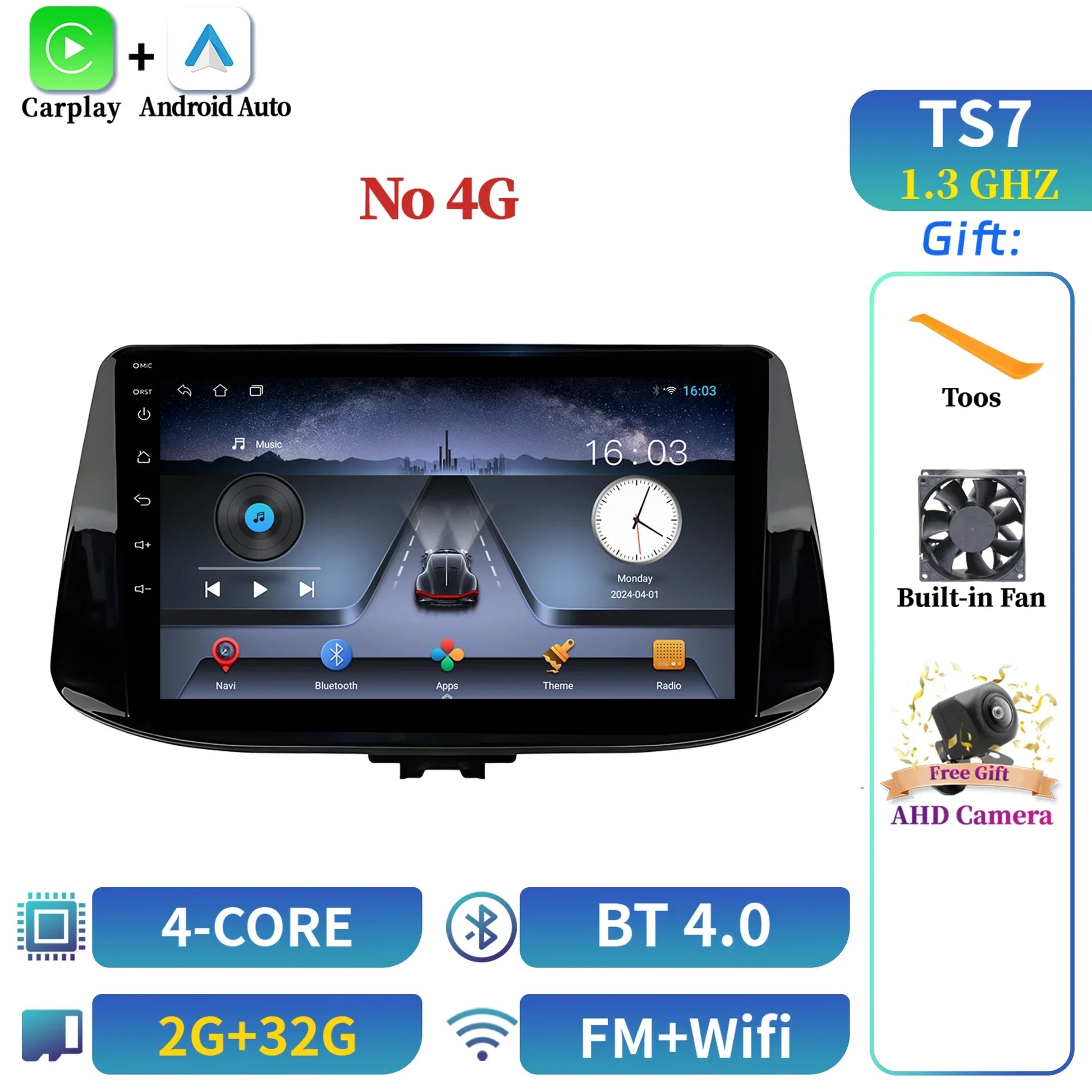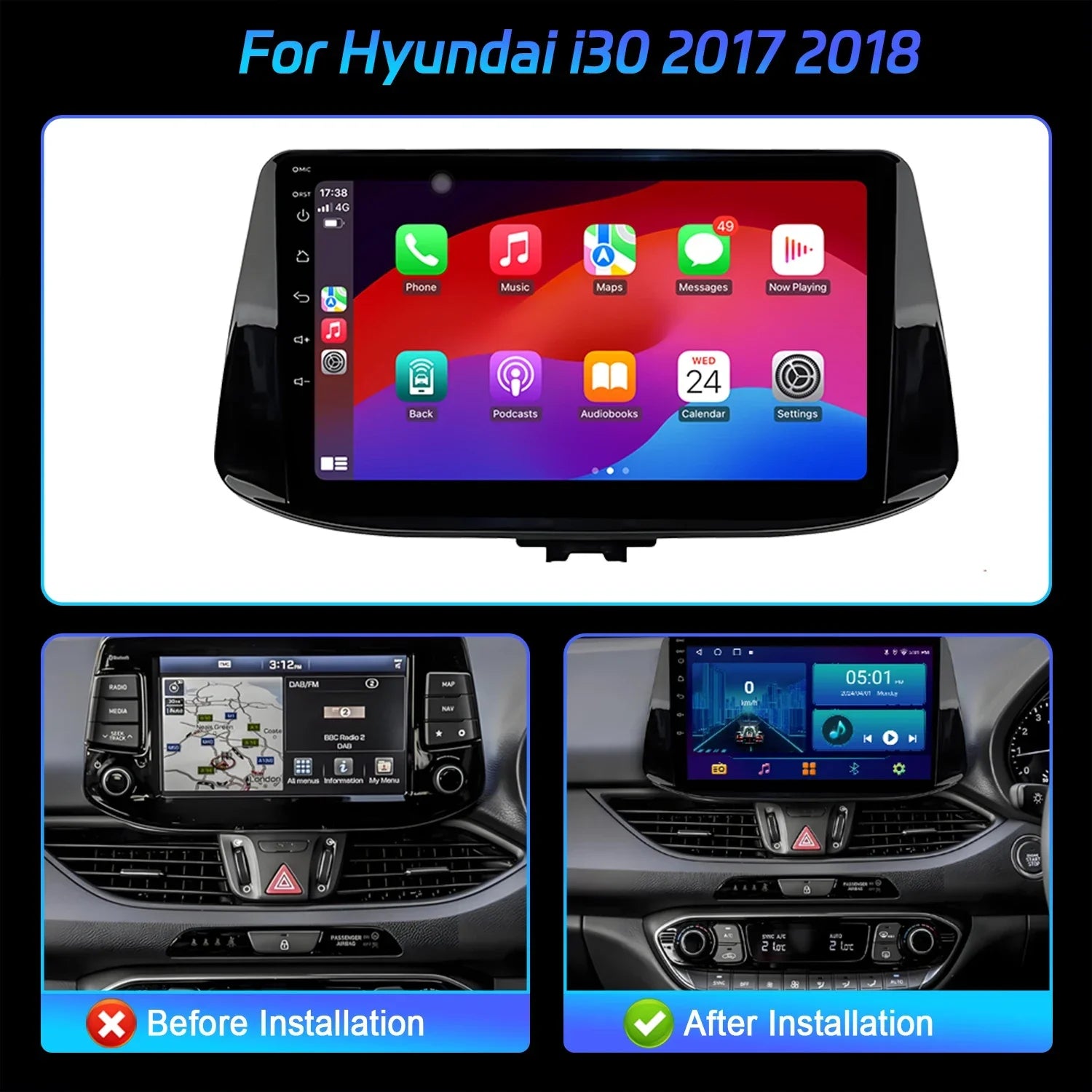 For Hyundai i30 2017 2018 CarPlay Car Radio Multimedia Player Navigation Wireless BT Carplay Android 14 Stereo 2K QLED Screen
