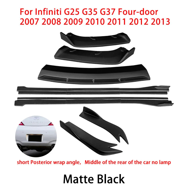 For Infiniti G25 G35 G37 Sedan 2007-2013 Car Front Bumper Splitter Diffuser Lip Protector Spoiler Side Skirts Rear Wrap Angle