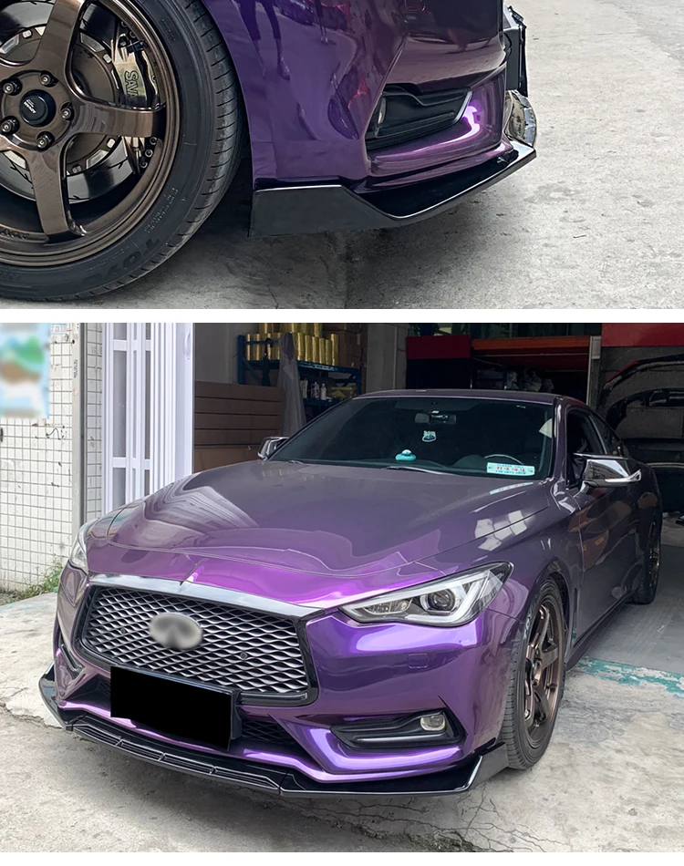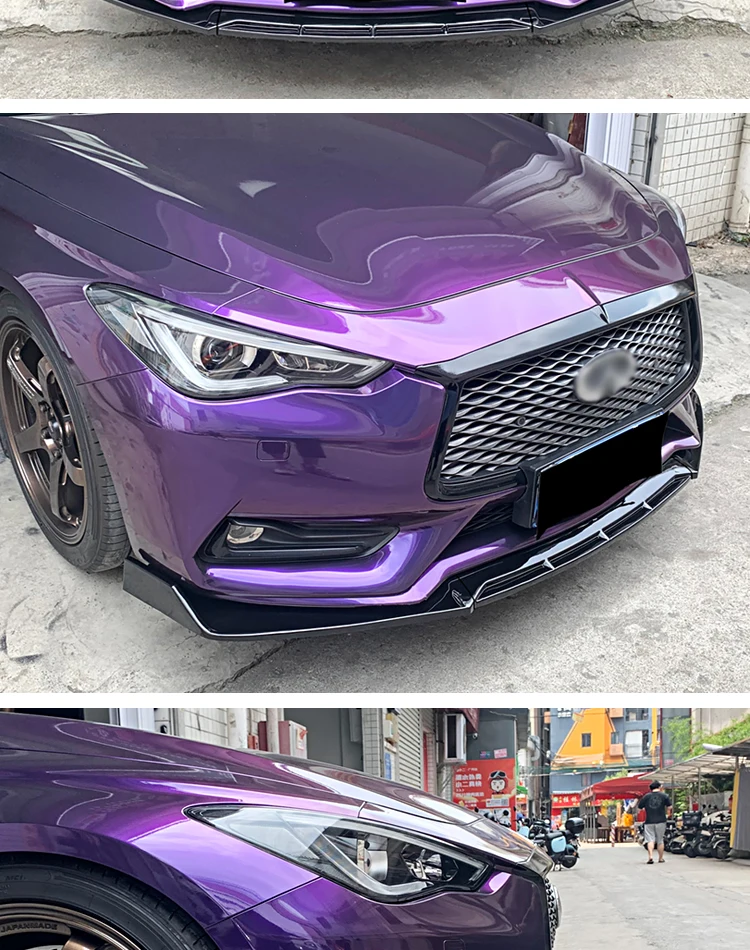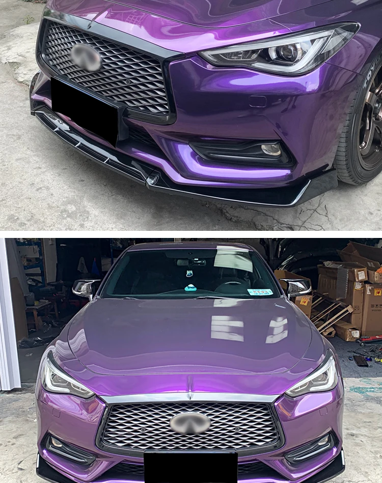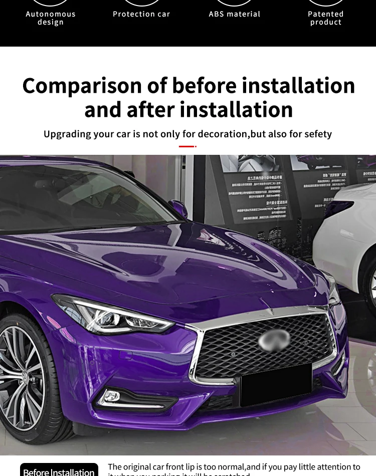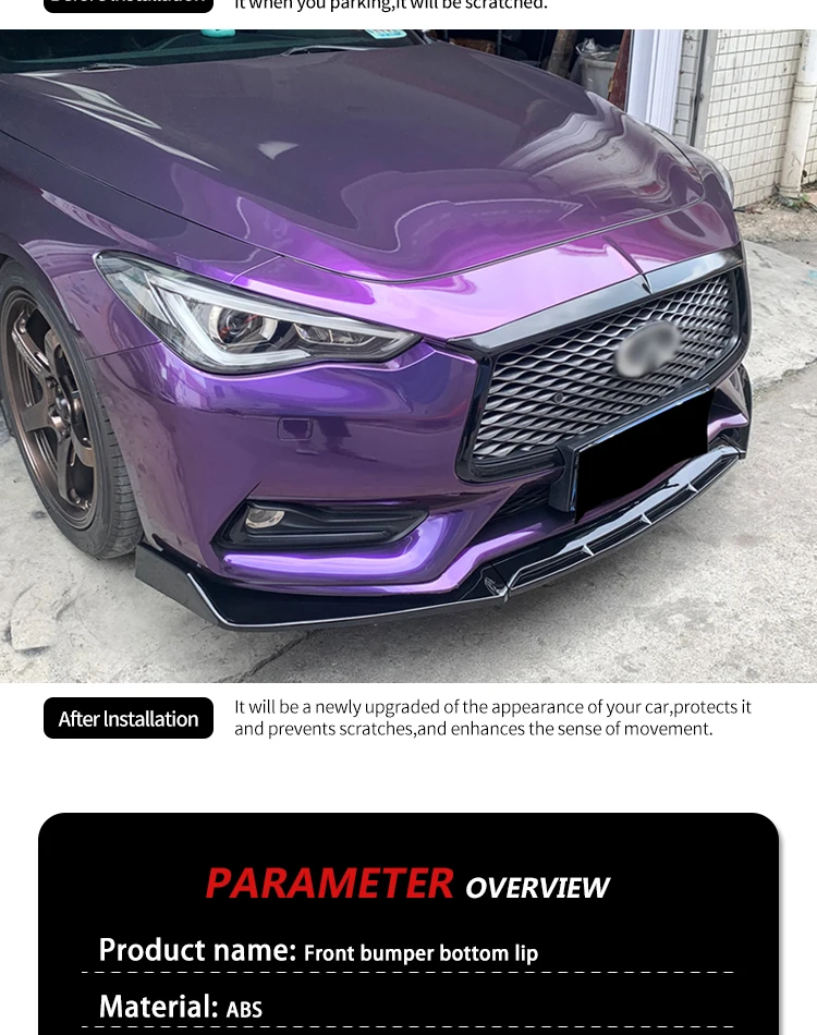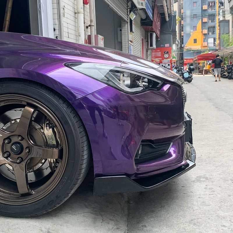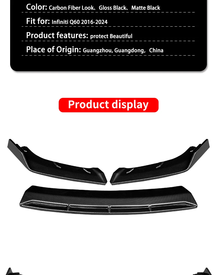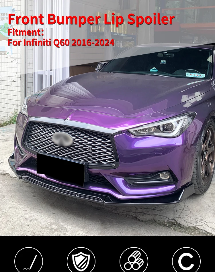 For Infiniti Q60 2016-2024 Car Front Bumper Lip Body Kit Chin Spoiler Diffuser Protector Deflector Guard Carbon Fiber Look ABS