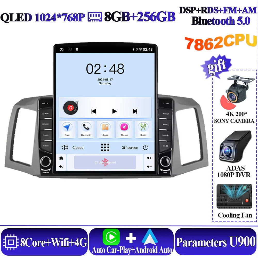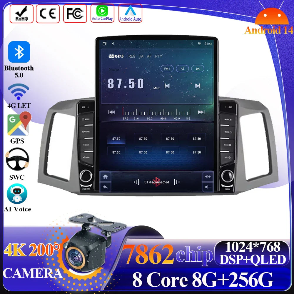 For JEEP Grand Cherokee WK 2004 2005 2006 2007 Tesla Type Car Radio Android 14 Carplay Multimedia Player Navigation Stereo