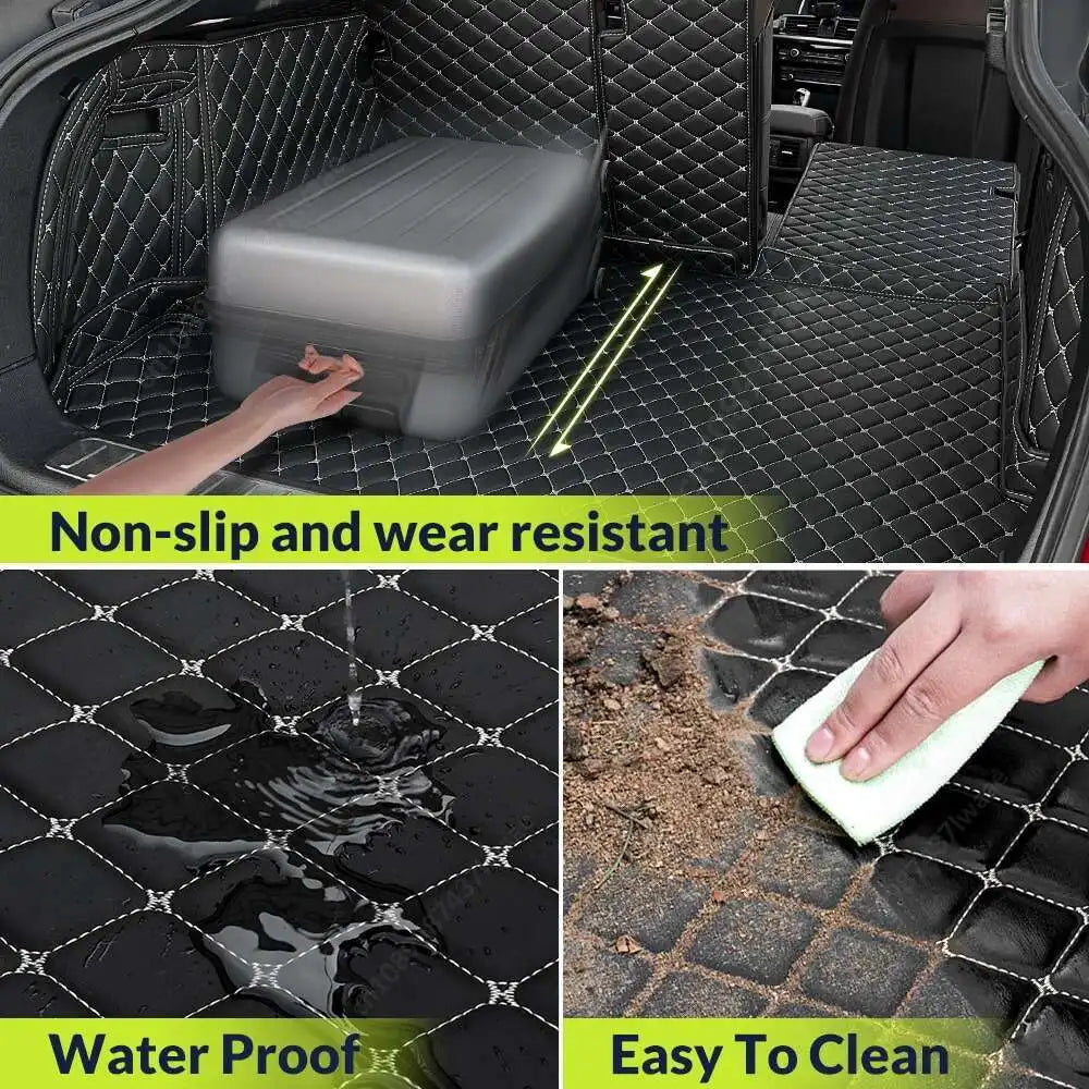 Notice before buying! 1. Please check whether your car model and year is exactly the same as the model in the title/picture we show. If everything is the same, you can buy it.If different, please contact customer service. 2.The mats sold in this link are suitable for: 3.Packaging Process:Because of the requirements for international shipping dimensions, the product must be folded for transportation, which may inevitably lead to some wrinkles. However, the product has excellent resilience and will gradually return to its original shape after a period of use, without affecting its normal function. If you are particularly concerned about the wrinkling issue, please be cautious before purchasing. 5.Material:5-layer thickened material:Pu leather;Elastic sponge;Enavironmental composite materials;Environmental XPE;Non-slip material. 6.Product Features:Easy to clean;Non-slip;Environmental protection material;Personalized customization;Easy to install;Protecting the interior of the car. 7.1: 1. Customized car service:Customized design according to your car model, perfectly fitting the shape of your trunk, not only tightly fitting, but also preventing movement. 8.Color Presentation: The product images displayed on our website are solely for the purpose of illustrating materials and colors. The product you receive will be specially customized based on the model and specifications of your car. EU countries: Your order amount already includes taxes, so you do not need to pay any additional fees. Korea: Orders below $150 are not subject to taxation, while orders above $150 are subject to a 10% tariff. 10.About delivery: Our car trunk mats are specially customized products. Production takes 3-7 working days, and after completion, quality inspection will be conducted. Once the product has no quality issues, it will be shipped immediately. (Large scale promotional activities take 3-10 working days). 11. After sales: |