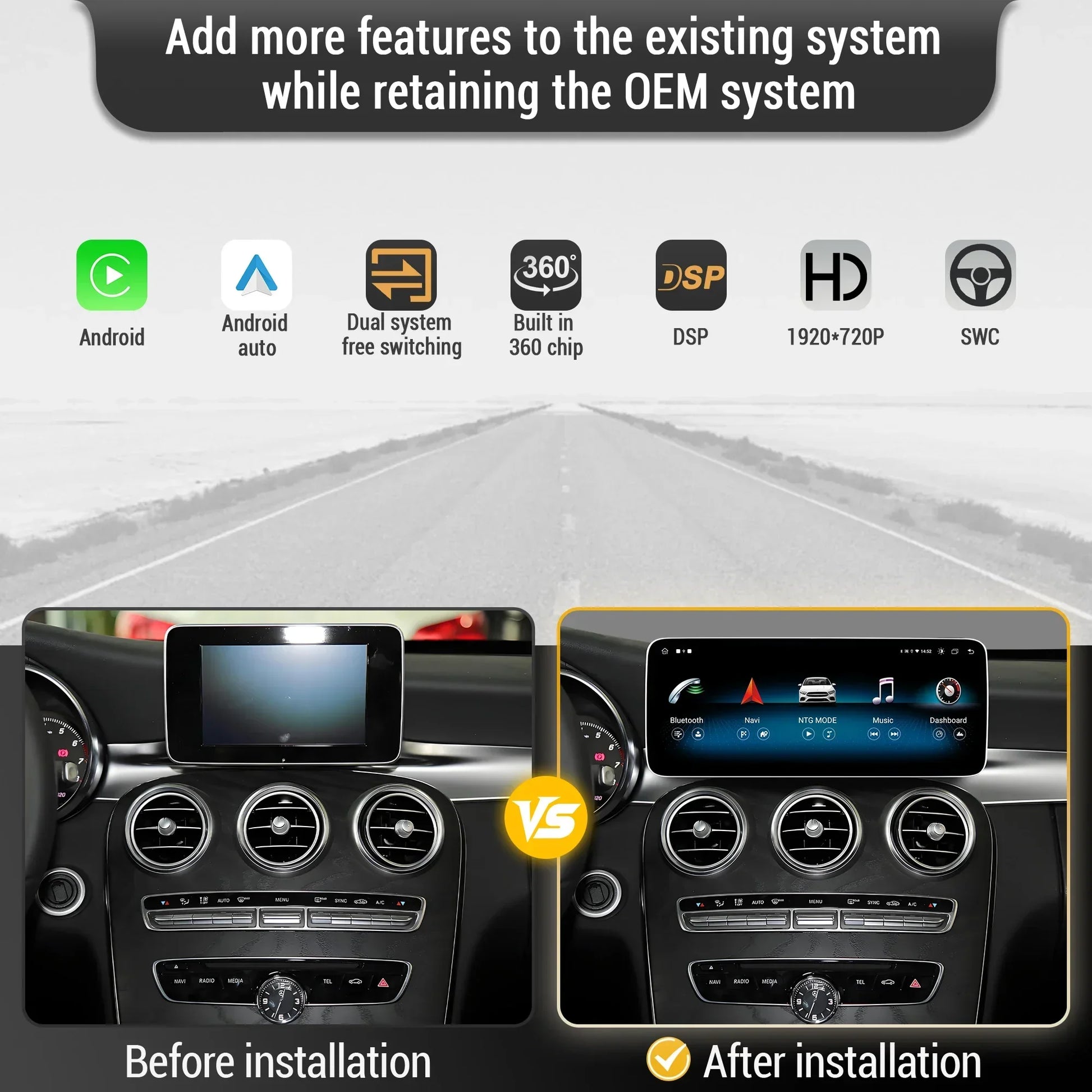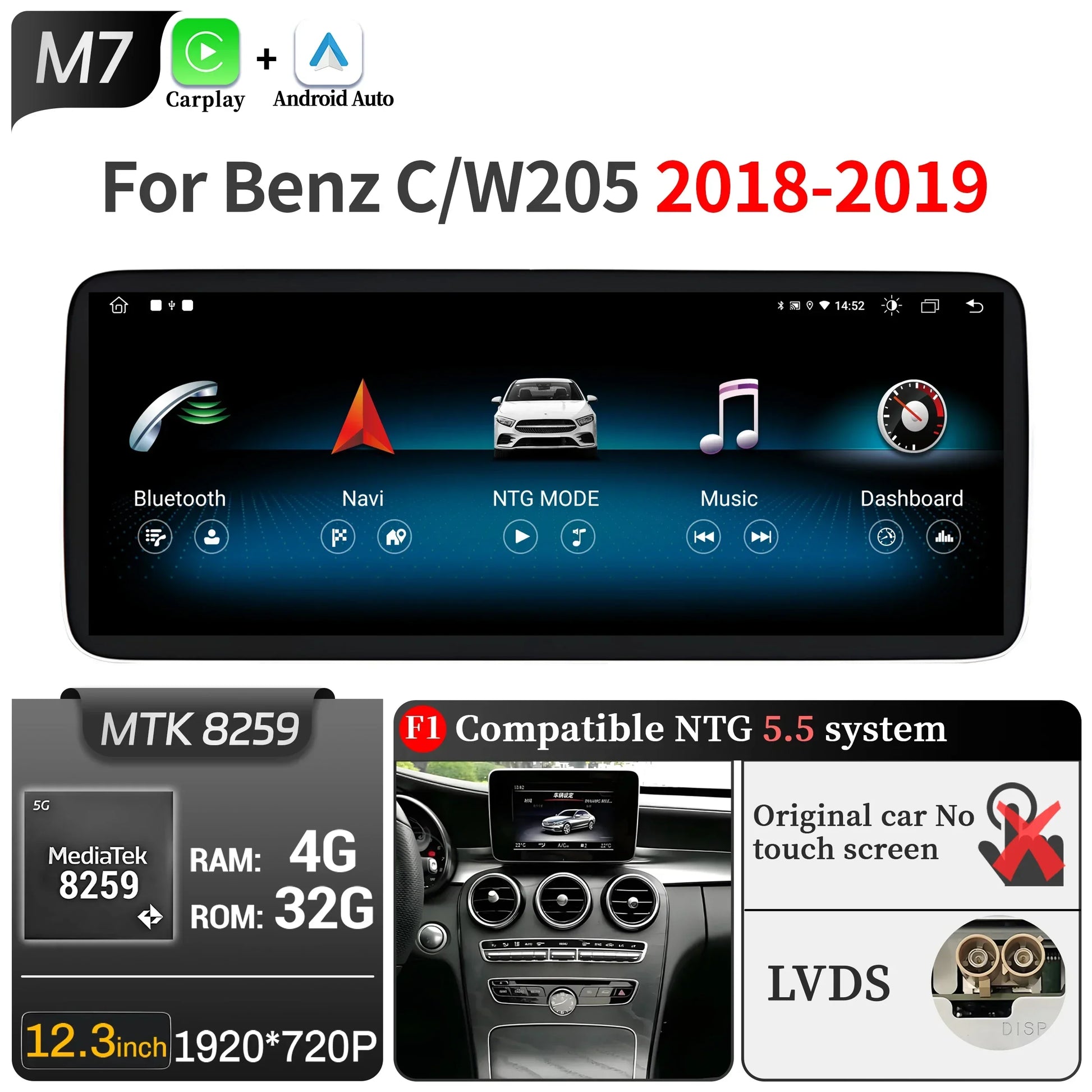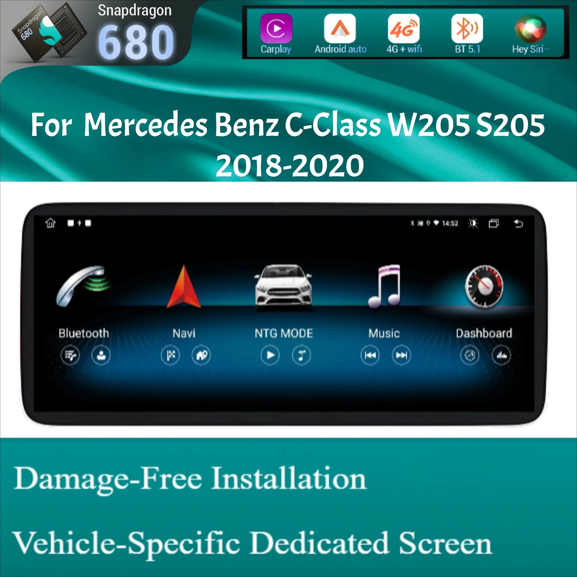 For Mercedes Benz C-Class W205 S205 2018-2020 12.3inch Car Radio Android 14 Wireless Carplay Snapdragon 680 SM6225 Touch Screen