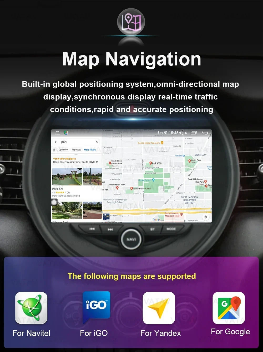 Built-in global positioning system,omni-directional map display,synchronous display real-time traffic conditions,rapid and accurate positioning