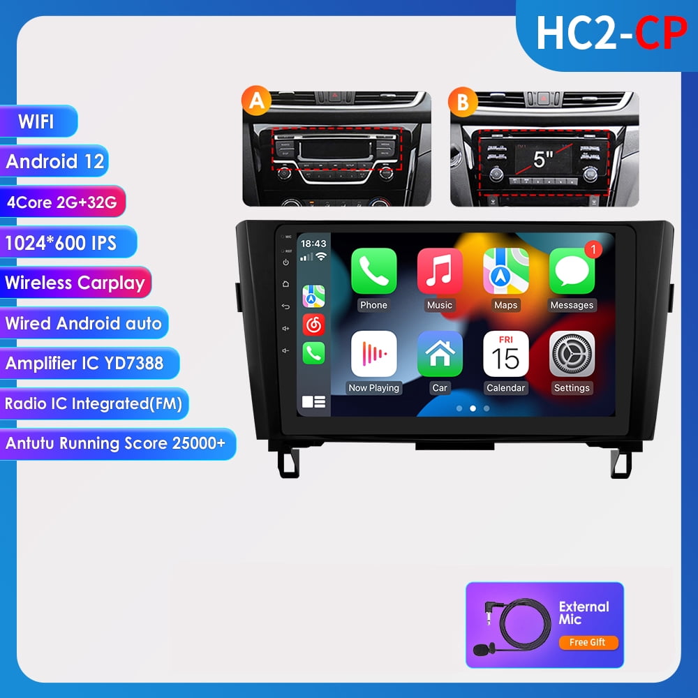 For Nissan X-Trail 3 Rogue Qashqai 2 2013-2017 Bluetooth Android 12 Wifi 2+32GB Car Stereo Radio Head Unit GPS Navigation Wireless Apple Carplay