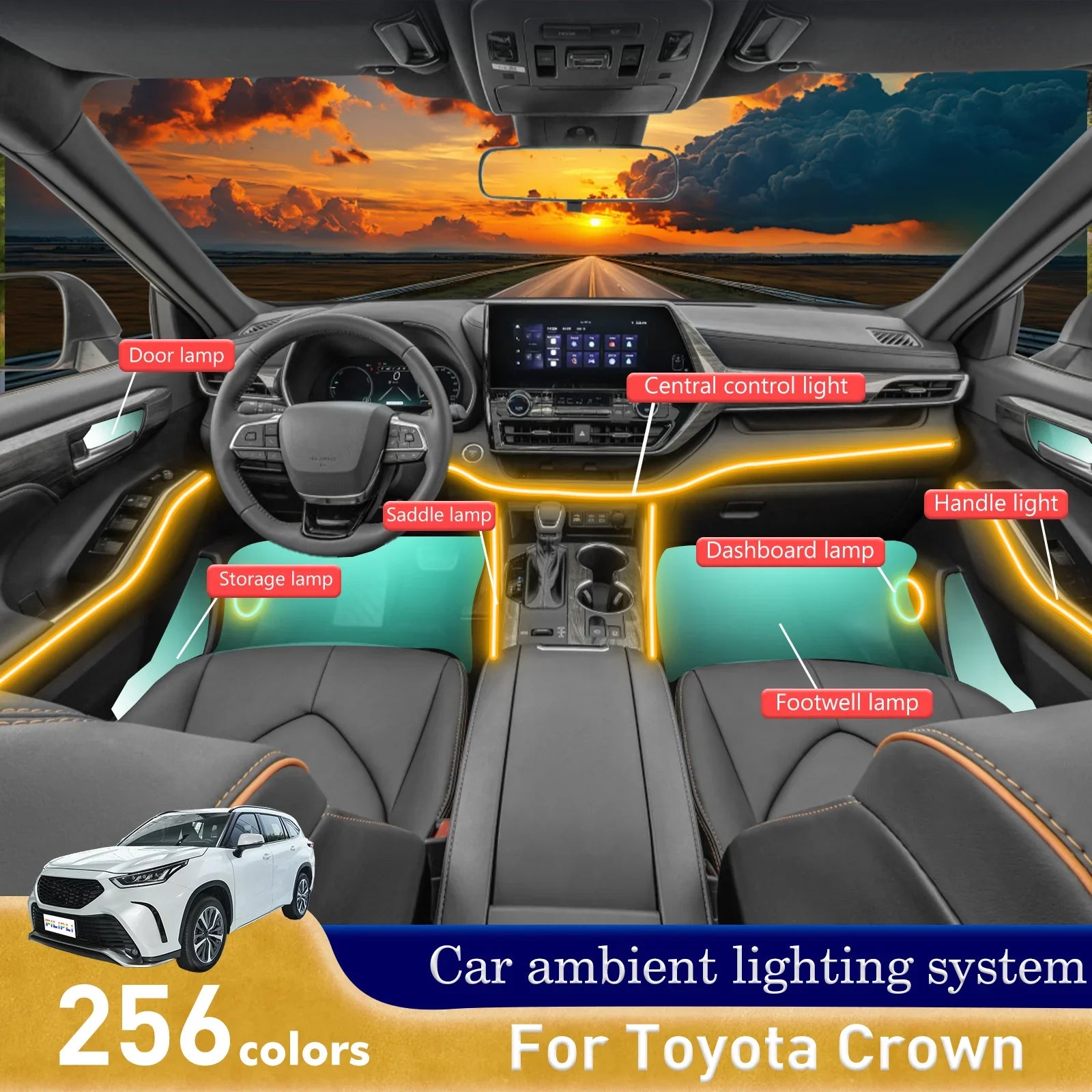 For Toyota Crown Car Interior Mood Ambient Light RGB 64-Color LED Smart Remote Control Atmosphere Lamp Energy Saving Kit