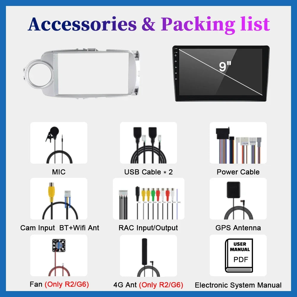 For Toyota Yaris 2012 - 2017 Android Car Radio Multimedia Video Player GPS Navigation Carplay QLED Touch Screen Auto Stereo DSP Ferrari Android host