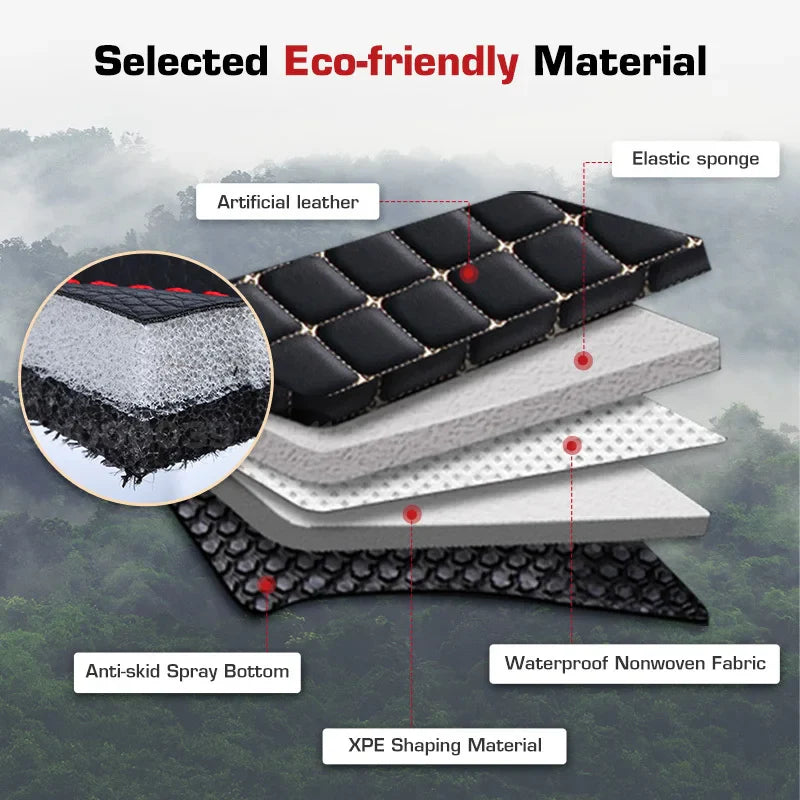 -This trunk mat is compatible with both left-hand drive and right-hand drive models -Products include: A set of mats -Material: Surface - Wear-resistant Artificial Leather; Middle - High Density Sponge; Bottom Layer - XPE+ Coating bottom All of them have passed SGS product certification, and there is no formaldehyde or harmful substances. -Function: Protect the trunk, Waterproof, Scratch-proof and Fireproof. If you have any questions, please contact our customer service and we will do our best to help you solve your questions. ![]() ![]() ![]() ![]() ![]() ![]() ![]() ![]() ![]()