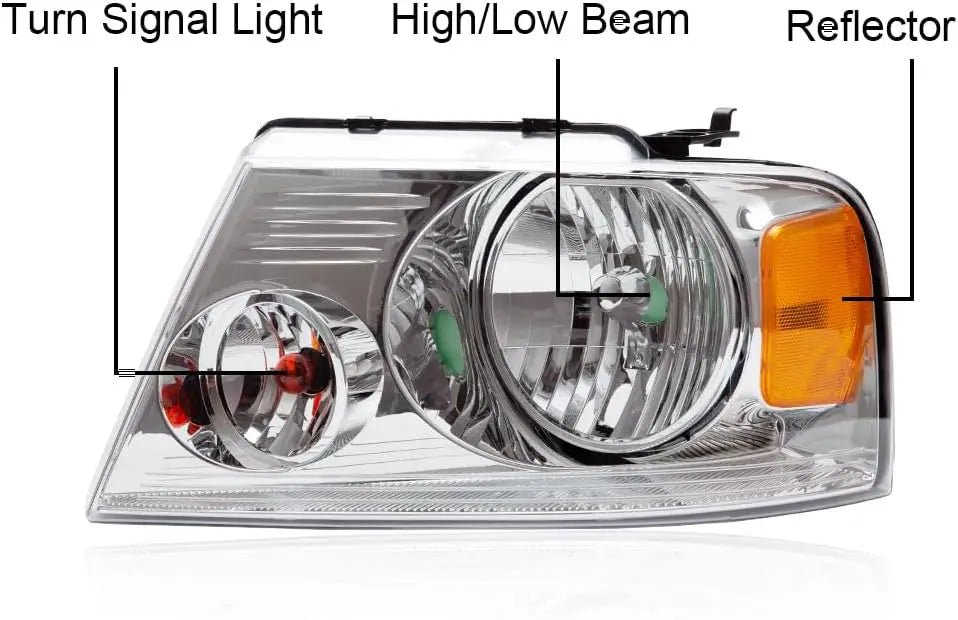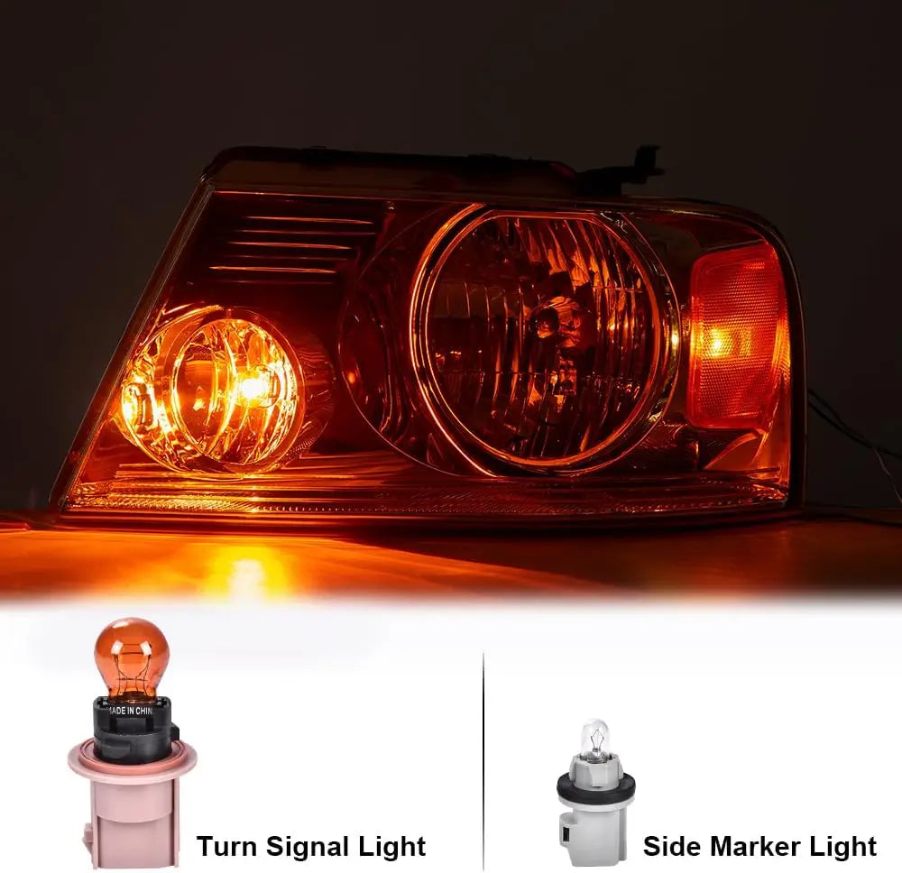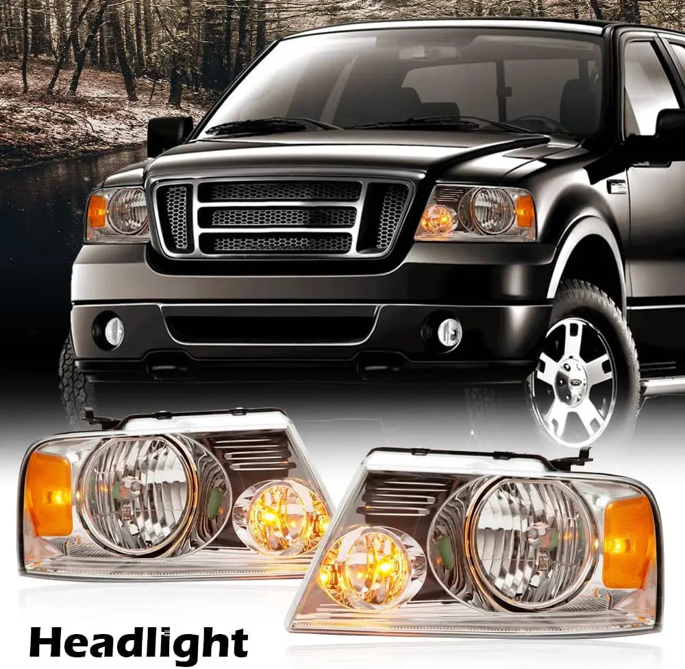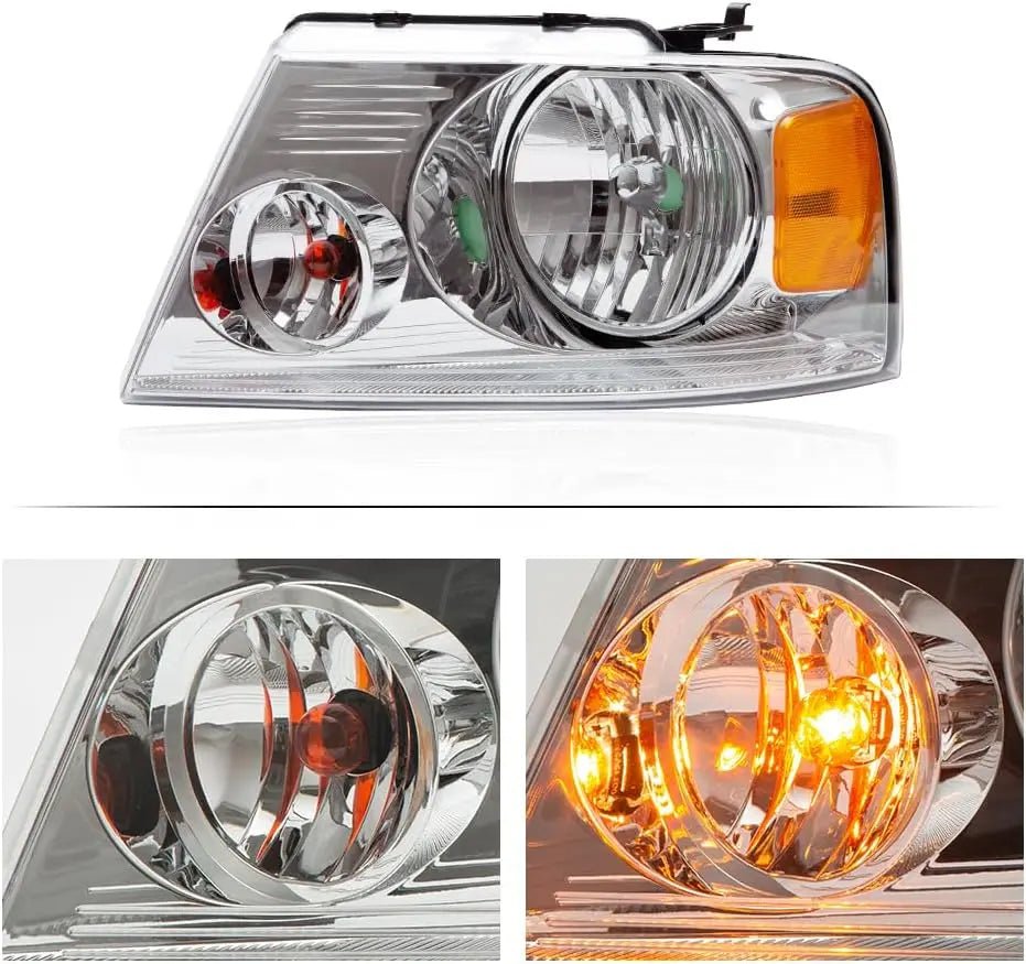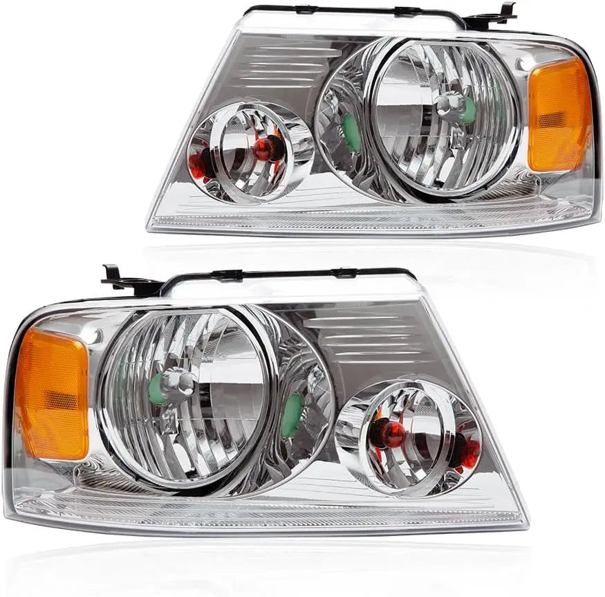 Front Headlights Assembly Headlamp, Compatible with 2004-2008 Ford F150/2006-2008 Lincoln Mark Lt bumper Headlamp, Chrome Housing Halogen Headlights(Clear lens Chrome Housing Amber Reflector)