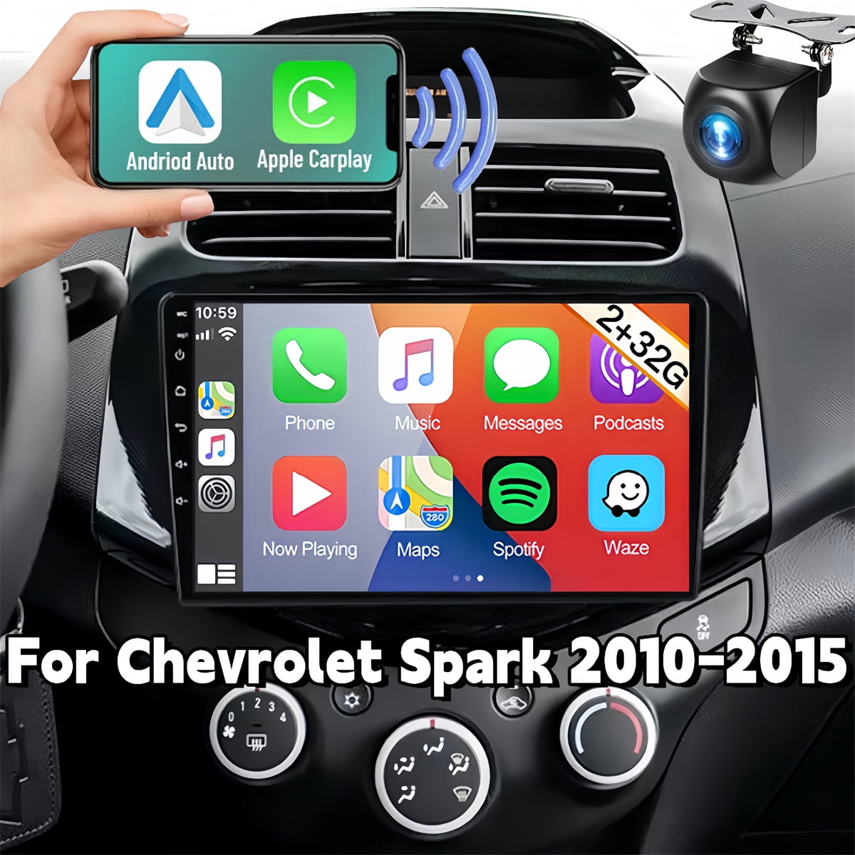 Guwzn Car Stereo Radio for Chevrolet Spark 2010-2015 9" Touchscreen 2+32G Vehicle GPS Navigation Wireless CarPlay Android Auto