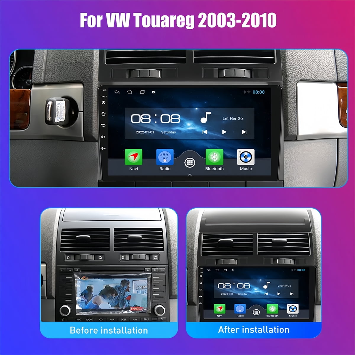 Guwzn Car Stereo Radio for Volkswagen Touareg 2003-2010 9" Touchscreen 2+32G Vehicle GPS Navigation Wireless CarPlay Android Auto
