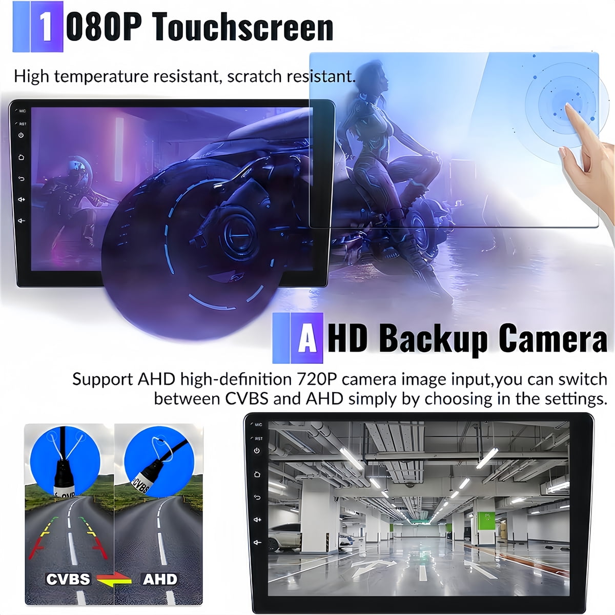 - 【AHD Backup Rear View Camera & Steering Wheel Controls】This car stereo with backup camera supports rear view image input. AHD camera,night vision ultra clear,182-degree ultra-wide angle,waterproof design.The screen automatically switches when vehicle is reversing, improving safety.Support the steering wheel control of the original car. After correct wiring, learn the steering wheel buttons then you can use the steering wheel control function,more convenient.