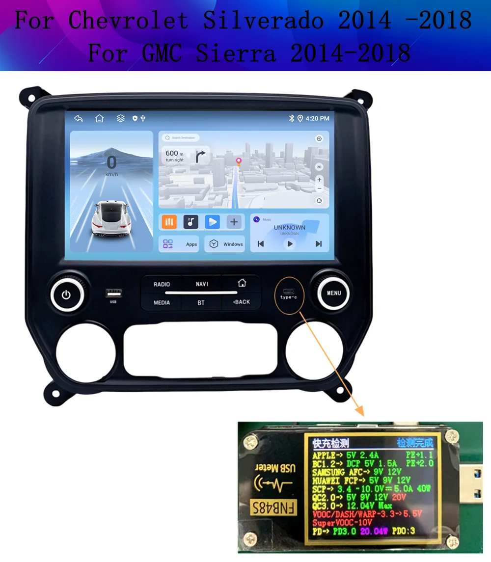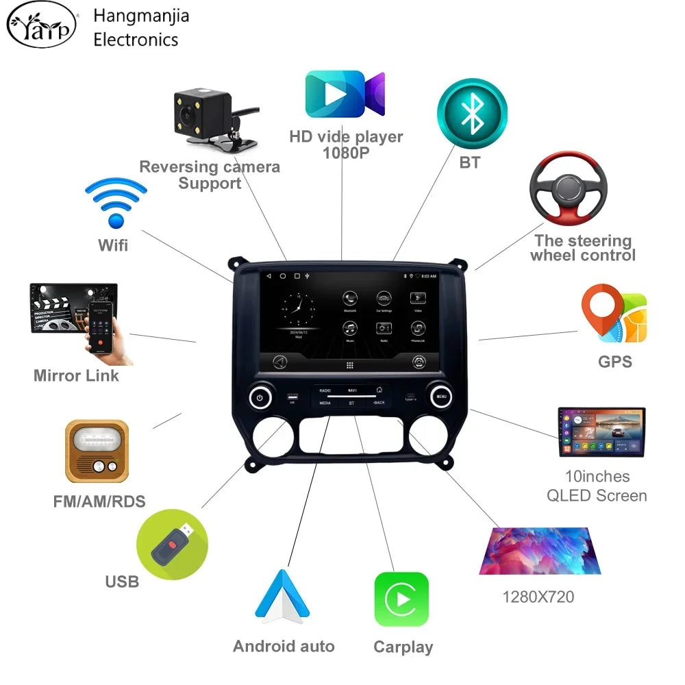 hangmanjia Car Auto Radio Navigation For Chevrolet Silverado GMC Sierra VIA Vtru 2014 - 2018 GPS Android Carplay Stereo No DVD
