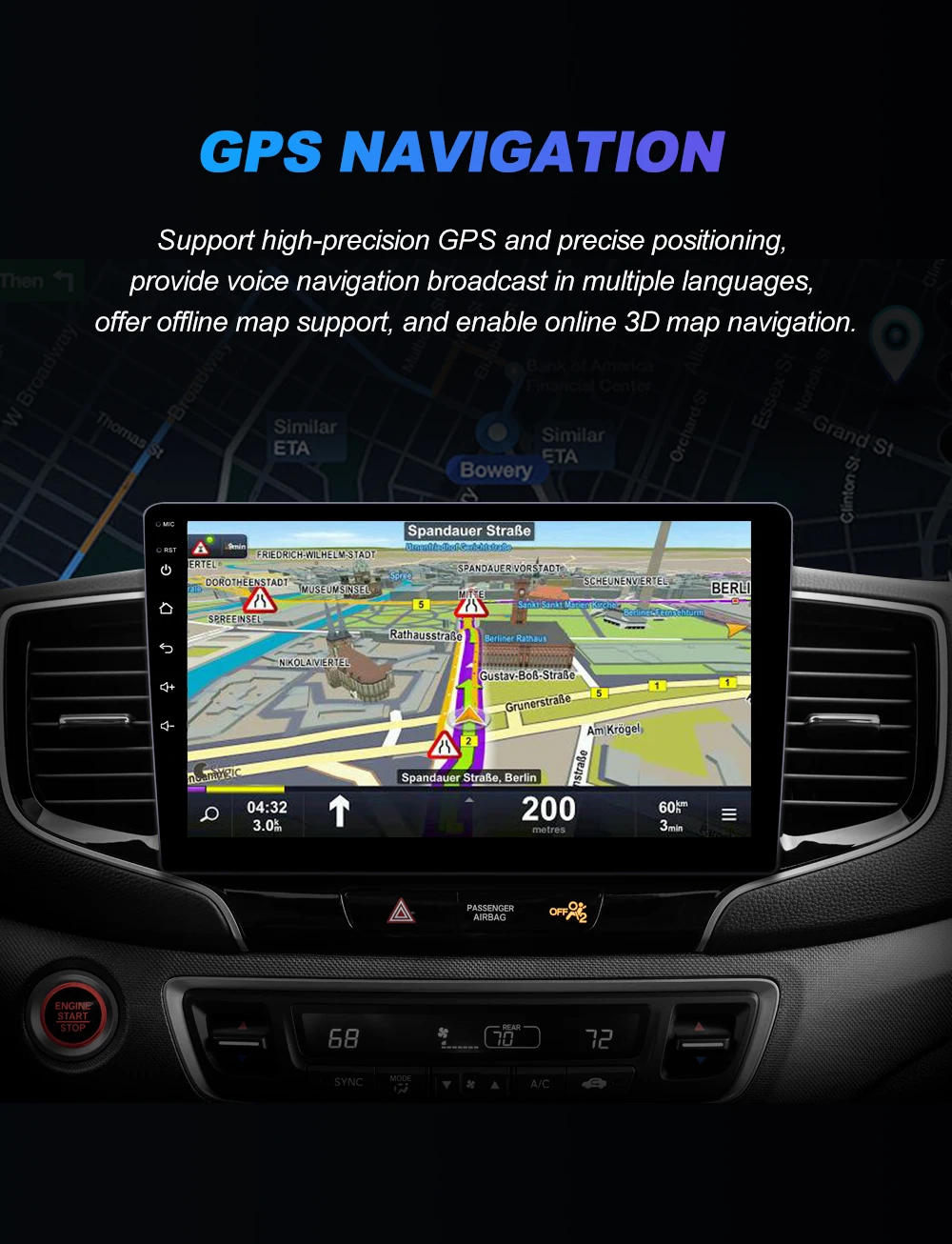 4, 4G Network + Steering Wheel Control + RDS +Built-in Navigation Offline Maps + High-quality DSP chip makes the sound quality playback even better;