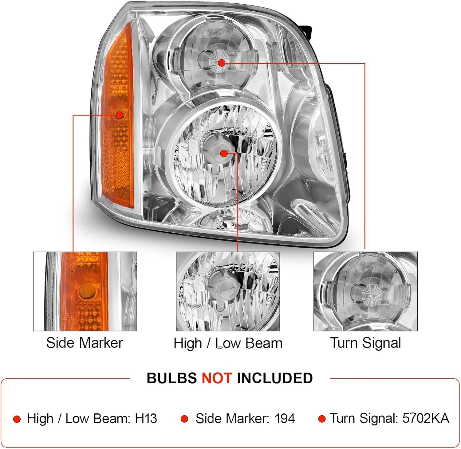 Headlight Assembly Halogen Compatible With 2007-2014 GMC Yukon 2007 2008 2009 2010 2011 2012 2013 2014 GMC Yukon Headlamp Assembly (Chrome Housing Amber Reflector)