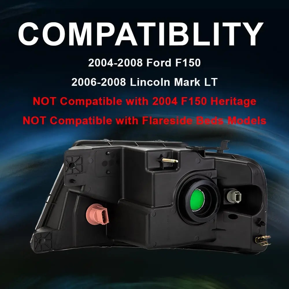 Headlights Compatible with 2004-2008 Ford F150/2006-2008 Lincoln Mark LT (NOT For 2004 F150 Heritage/Flareside Beds Models) Left