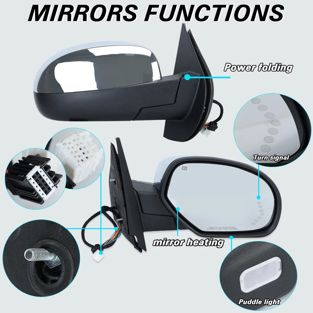 Heated Side Door Mirror Glass For Chevrolet Avalanche Tahoe Suburban Silverado For GMC Yukon Sierra 1500 2500 3500 HD 2007+ fold