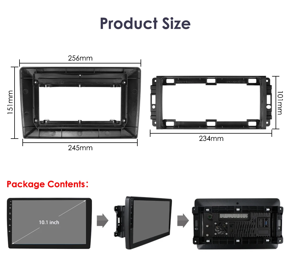 Our product: Larger display, Android system, more functions. The frame is customized according to the original car. Easy to install.