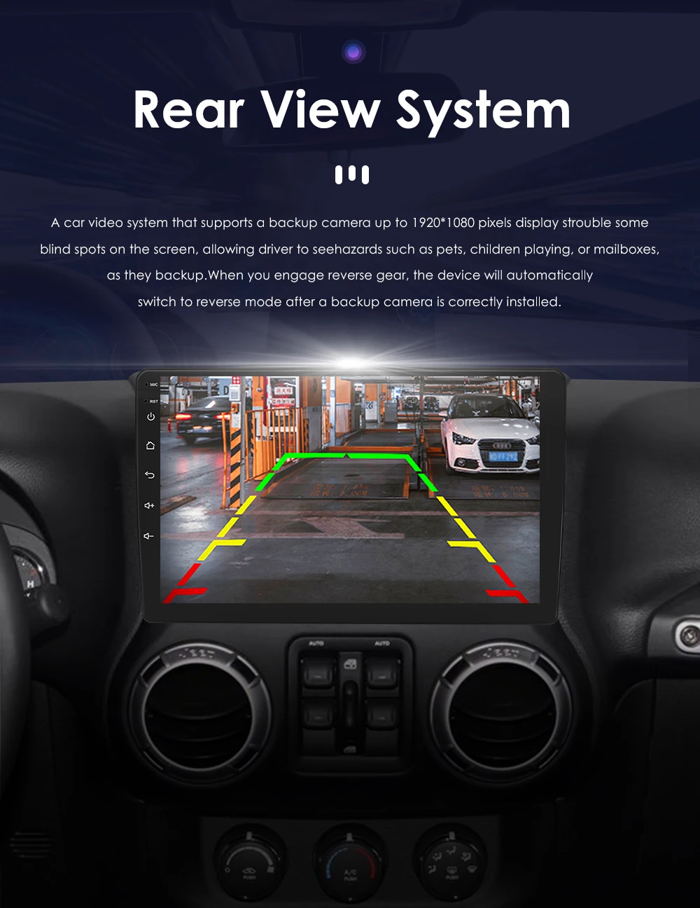 The car radios support reverse rear view display. When the car is in reverse mode, the radio will immediately switch to the rear screen of the car to ensure your driving safety.