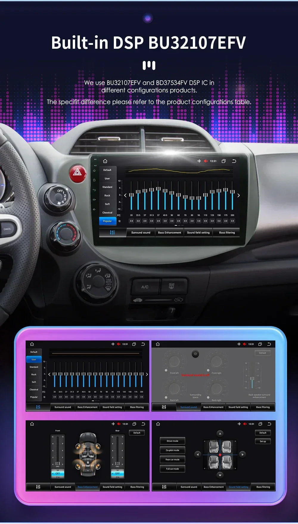 We use BU32107EFV and BD37534FV DSP IC in different configurations products.
