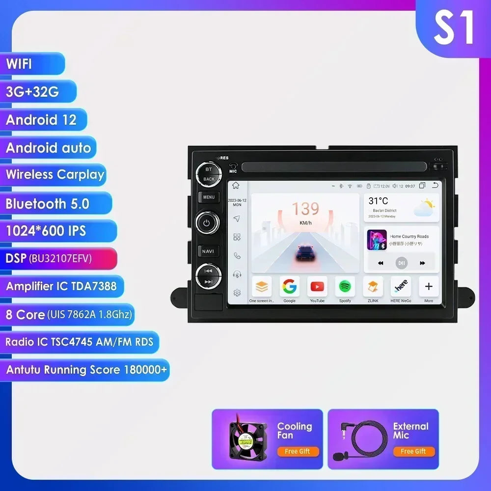 Hizpo Android 12 2 Din GPS Multimedia Player For Ford 500 F150 Explorer Edge Escape Sport Fusion Expedition Mustang Car Radio