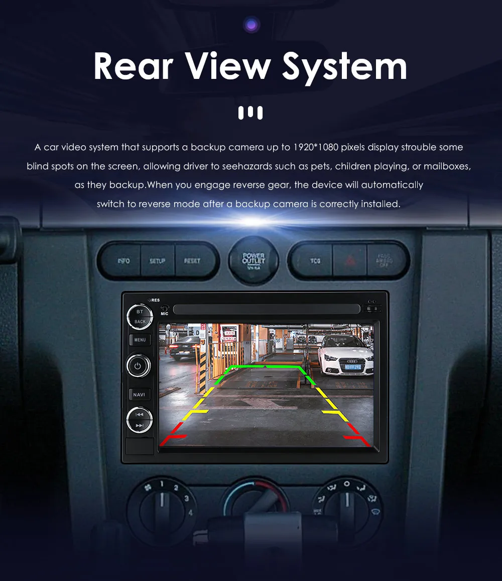 The car radios support reverse rear view display. When the car is in reverse mode, the radio will immediately switch to the rear screen of the car to ensure your driving safety.