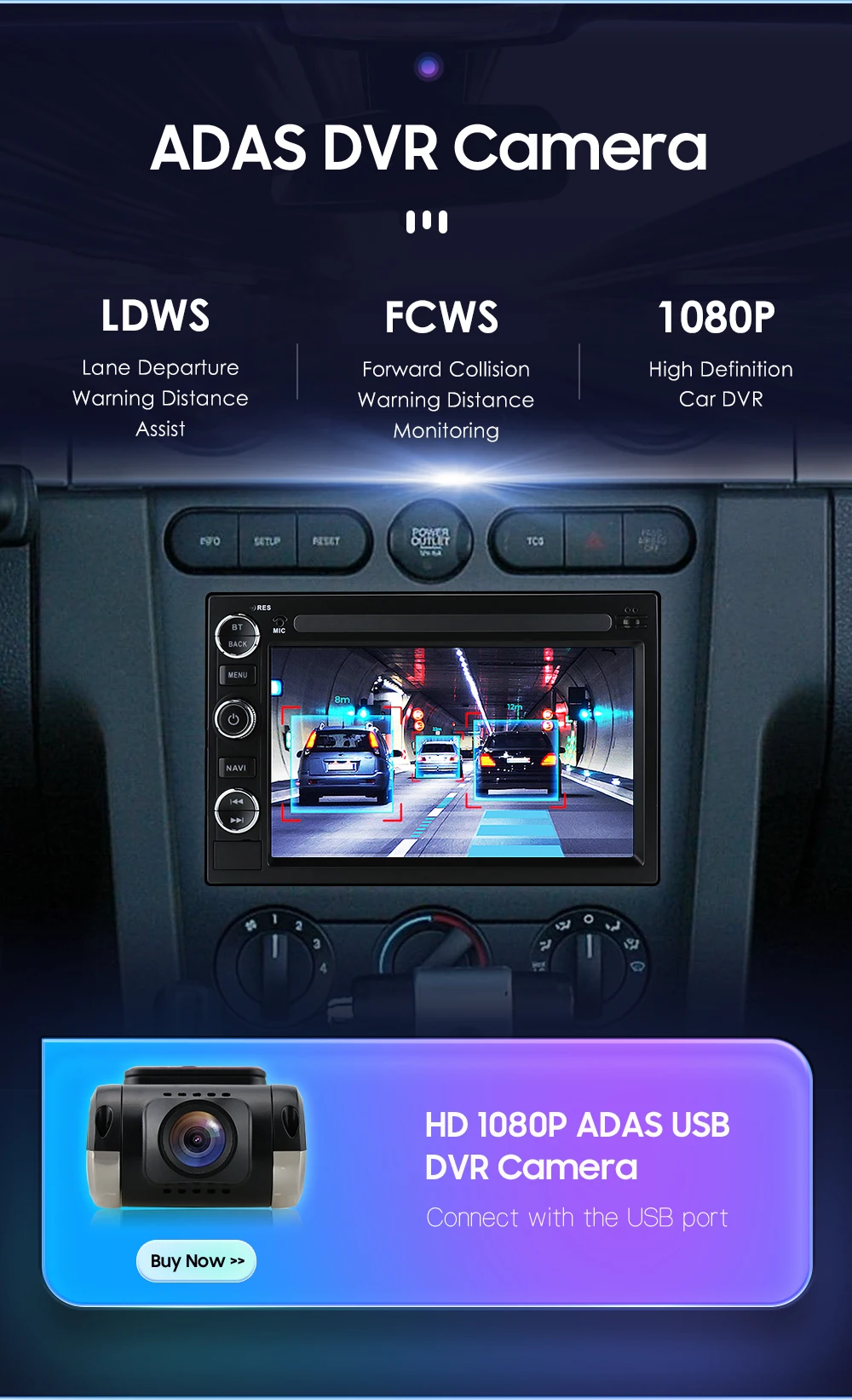 Support connection to ADAS DVR. ADAS DVR has multiple built-in assistive driving technologies,