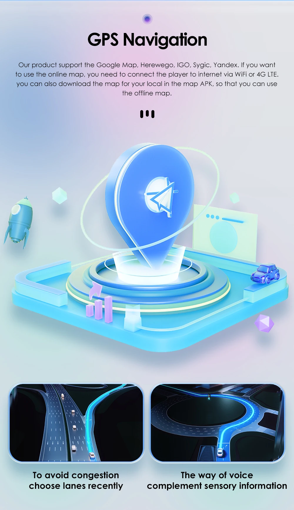 The radio has a built-in RDS function, especially for European users, it automatically selects the stable frequency of the radio station being listened to, Receive more stable radio station, Less radio noise, Higher performance during driving