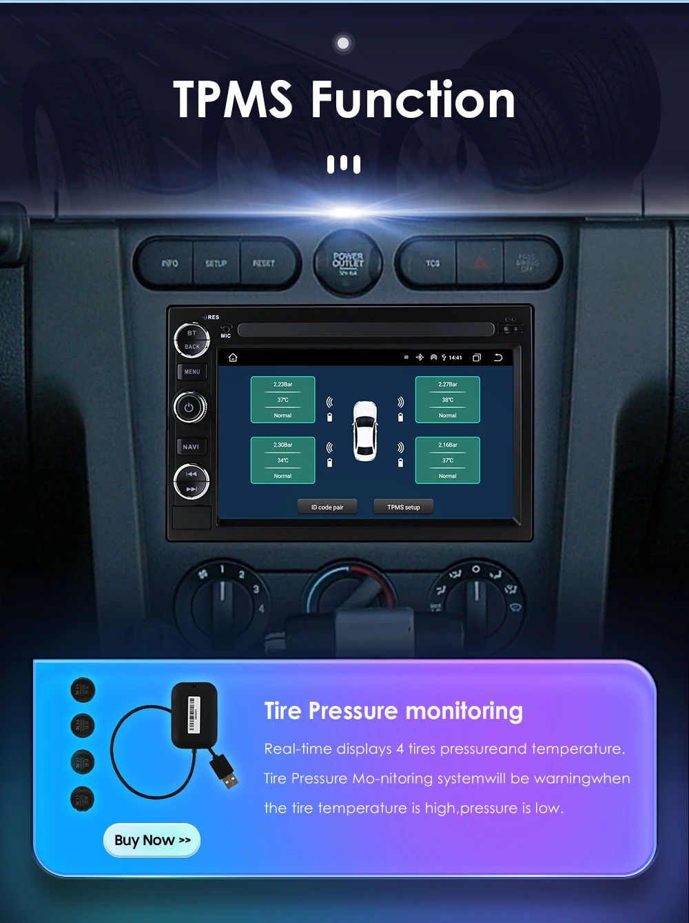 Support USB tire pressure detection: The package does not include tire pressure detection. You can click the image below to buy it.