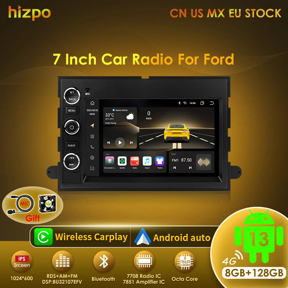 Hizpo Android 13 2 Din GPS Multimedia Player For Ford 500 F150 Explorer Edge Escape Sport Lincoln Expedition Mustang Car Radio