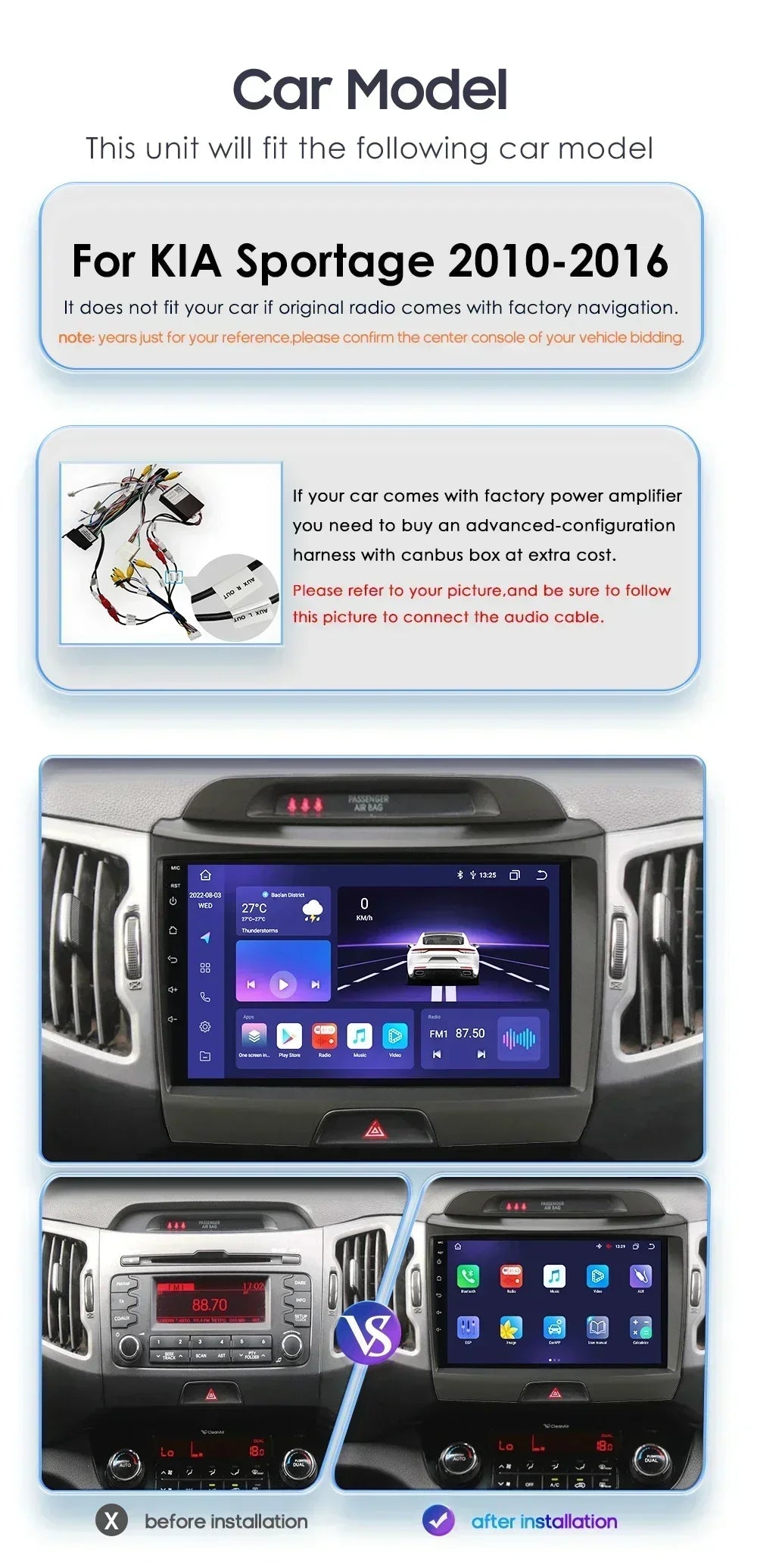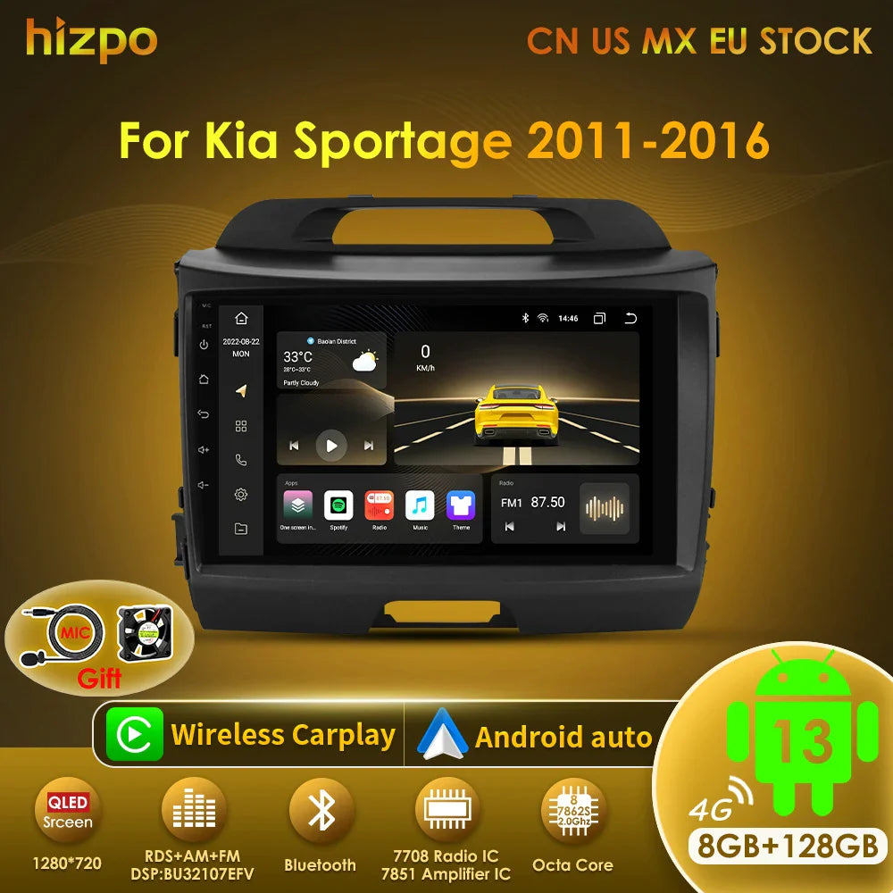 Hizpo Android 13 Car Radio GPS For KIA Sportage 3 2010 2011-2016 Multimedia Video Player 2din Navigation AUTO Stereo Head Unit