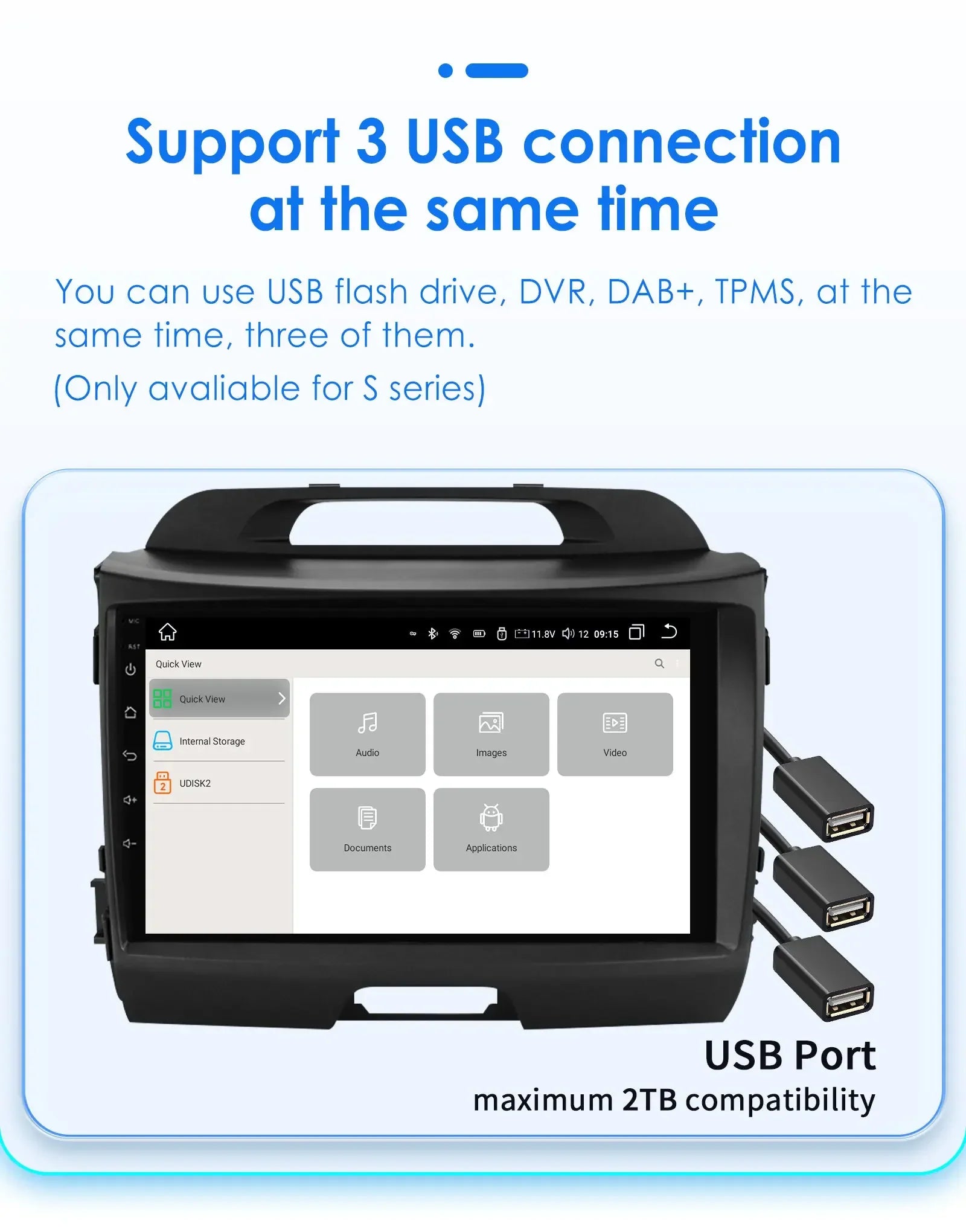 You can use USB flash drive,DVR,DAB+TPMS at the same time,three of them.