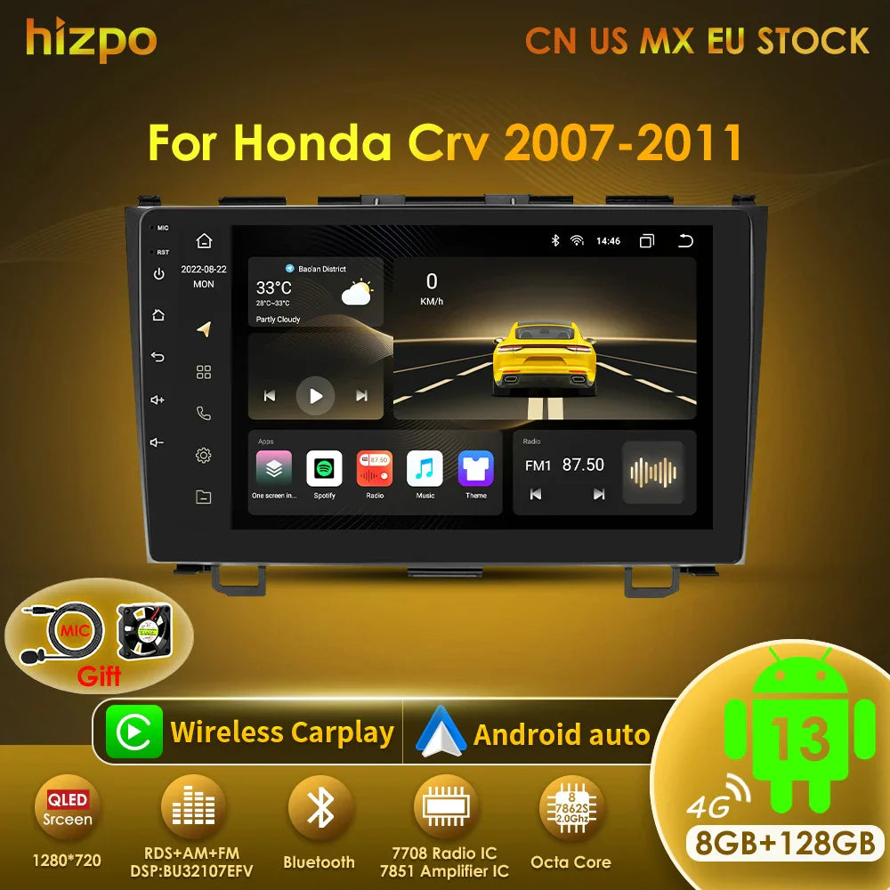 Hizpo Car Radio for Honda CRV CR-V 2007-2011 Multimedia Video Player Navigation Stereo GPS Android 13 Carplay Head Unit No DVD