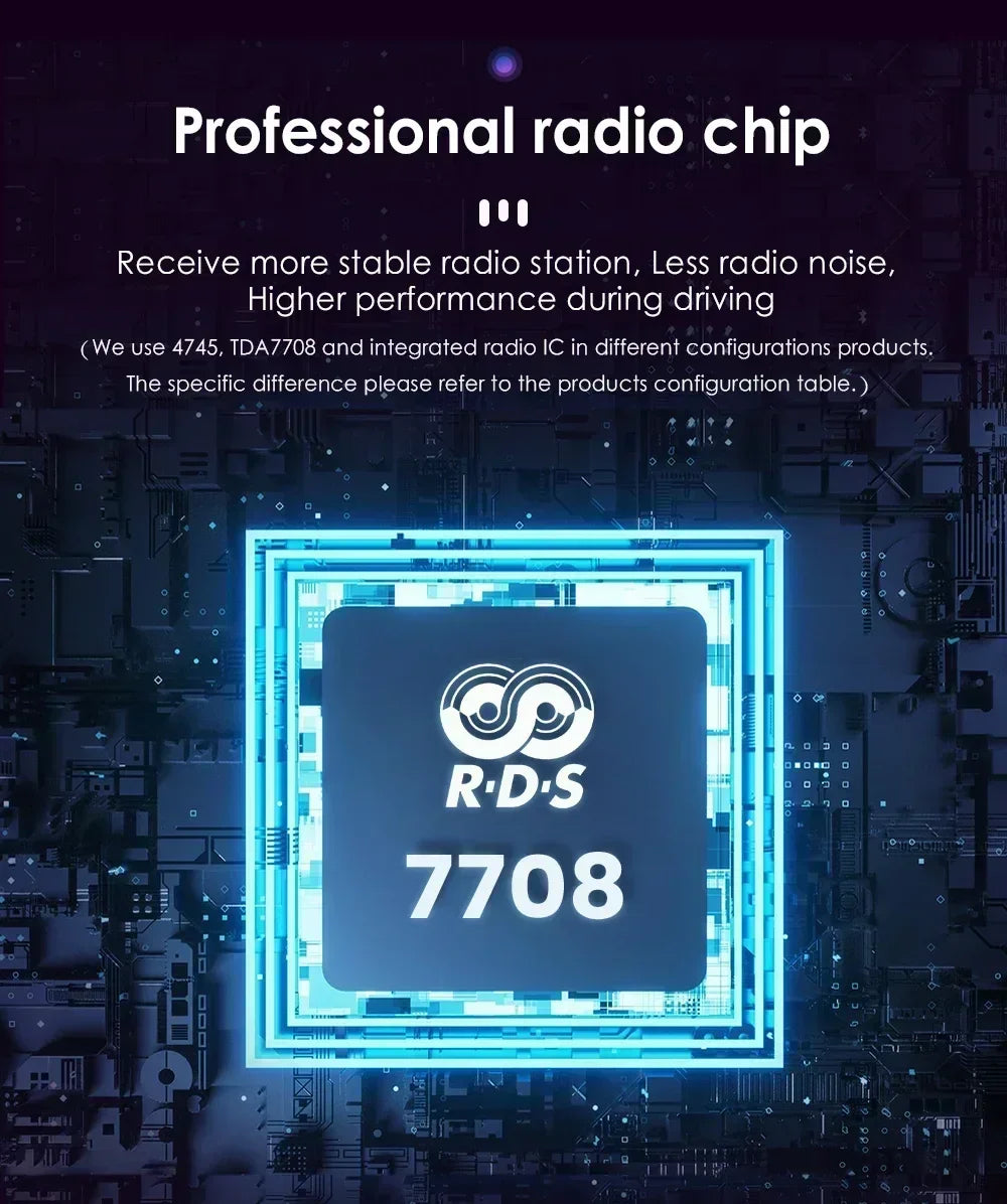 The radio has a built-in RDS function, especially for European users, it automatically selects the stable frequency of the radio station being listened to, Receive more stable radio station, Less radio noise, Higher performance during driving
