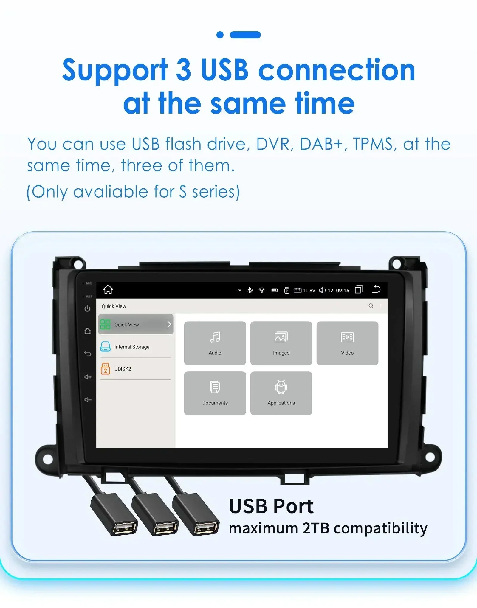 You can use USB flash drive,DVR,DAB+,TPMS at the same time,three of them. (Only avaliable for S series)
