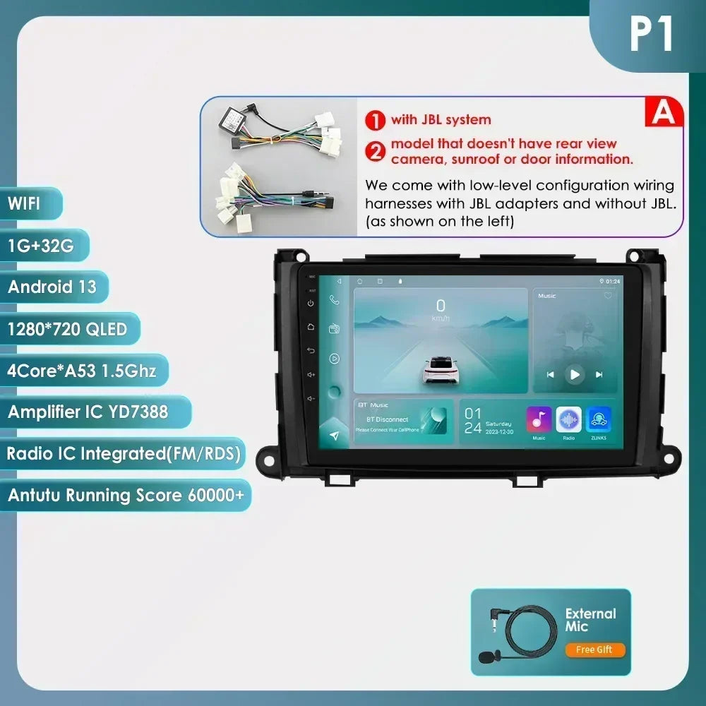 Hizpo For Toyota Sienna XL30 2010-2014 Car Radio Multimedia Video Player Navigation Stereo GPS Android Auto Carplay 8G+128GB RDS