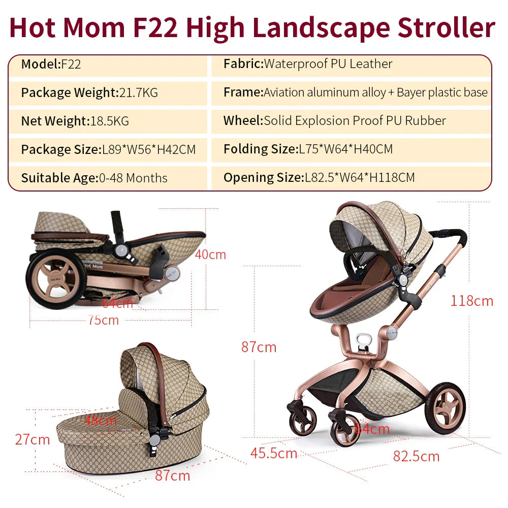 Hot Mom F22 baby stroller,adjustable seat,aluminum frame,solid rubber tires,rain cover,mosquito net,large storage basket