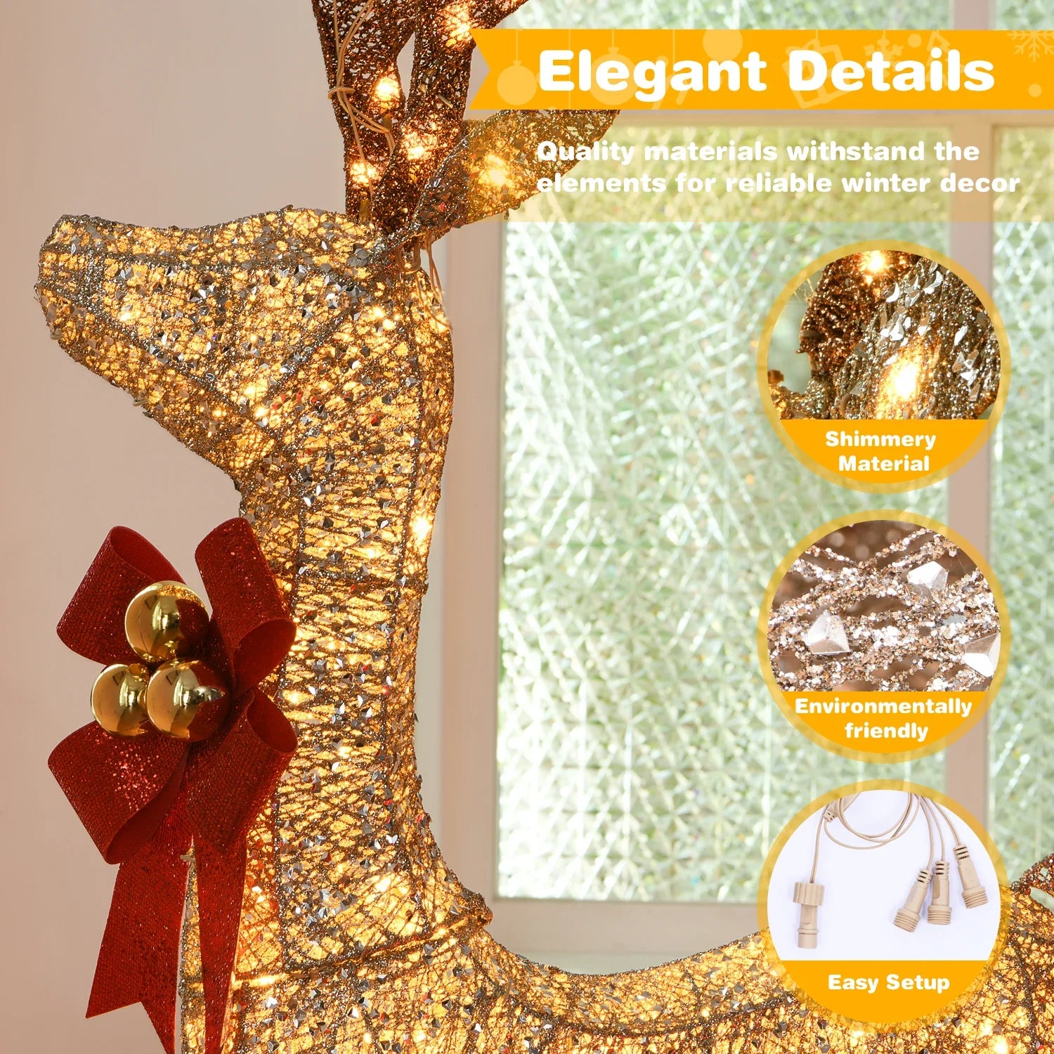 Indoor Outdoor Large Lighted Christmas Deer Family Set Front Yard Porch Holiday Decoration with 160/210 Warm White LED Lights