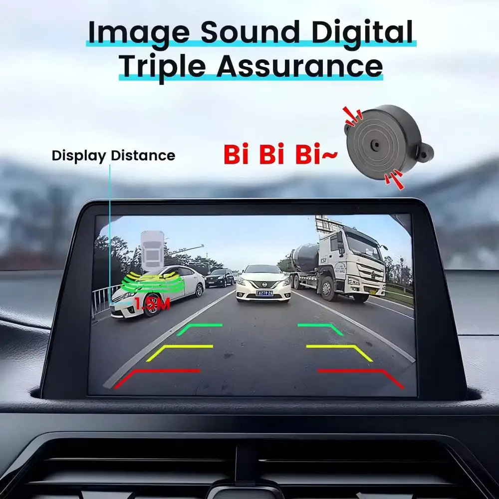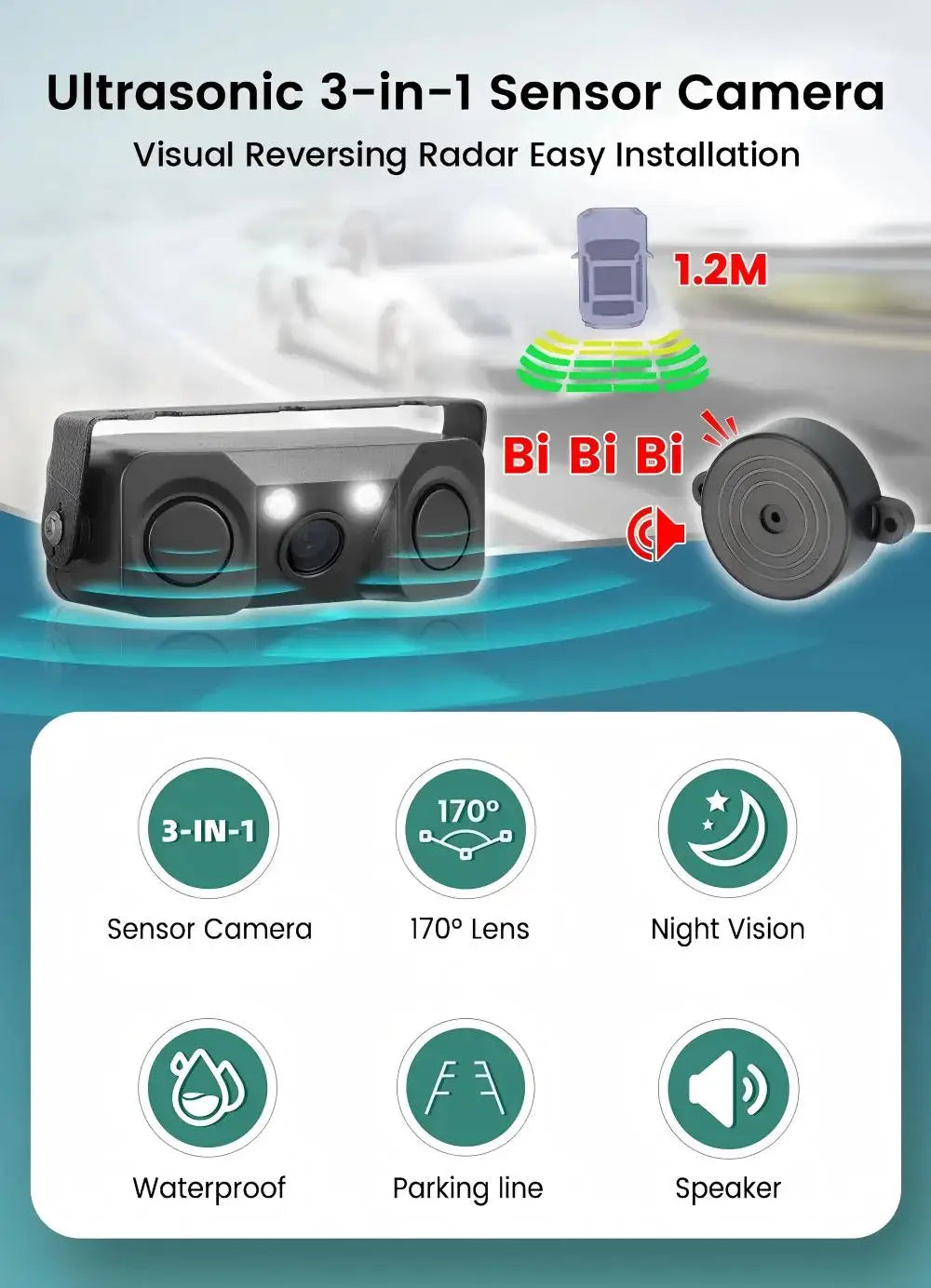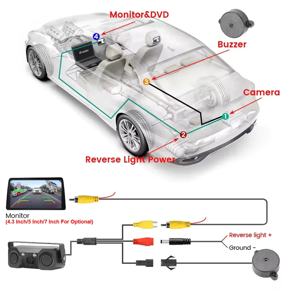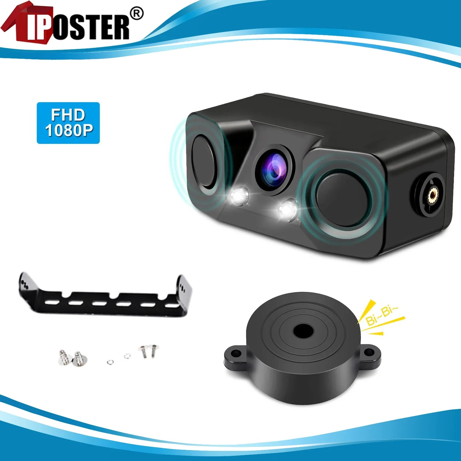 iPoster AHD 1080P PAL Car Rear View Reversing Backup Camera with Parking Radar Sensor Beeper 3-In-1 12V Night View For Car SUV