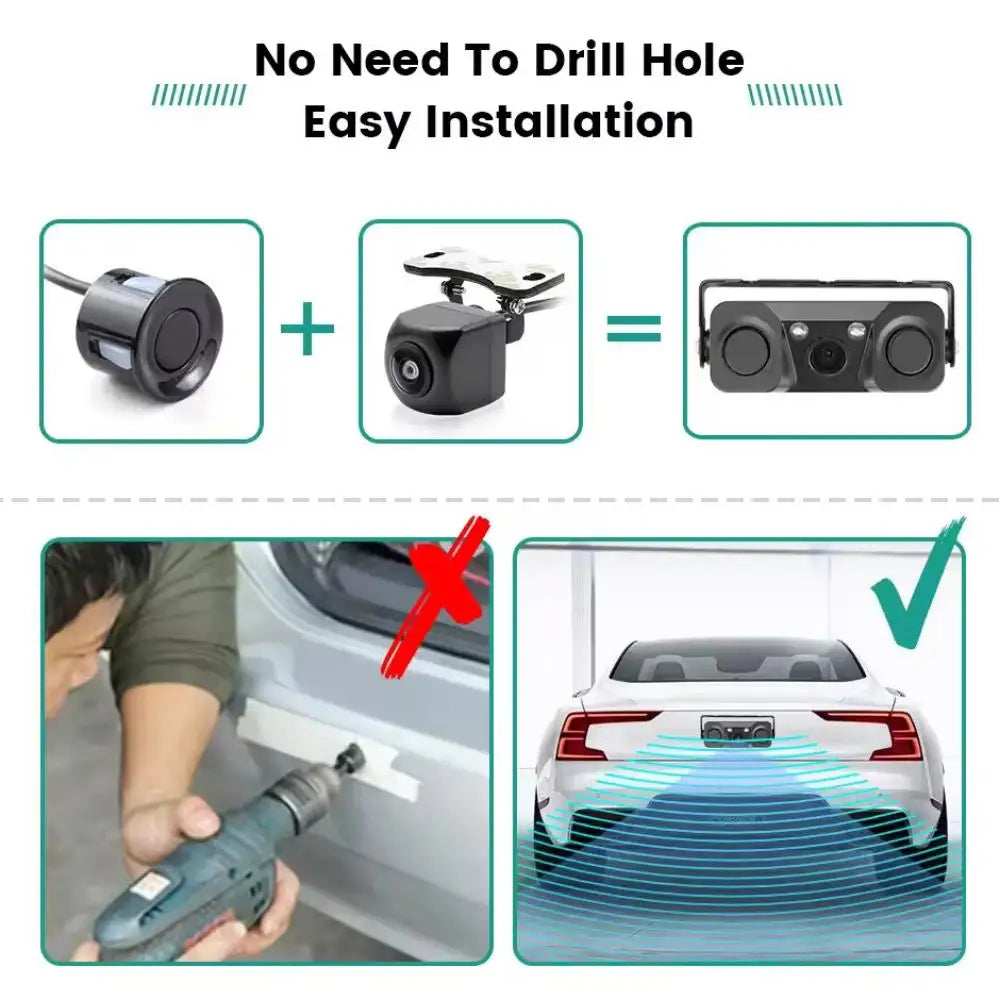 AHD 1080P PAL 3 In 1 Car Reversing Backup Rear View Camera with 2x Parking Radar Sensors Night Vision Waterproof Kit