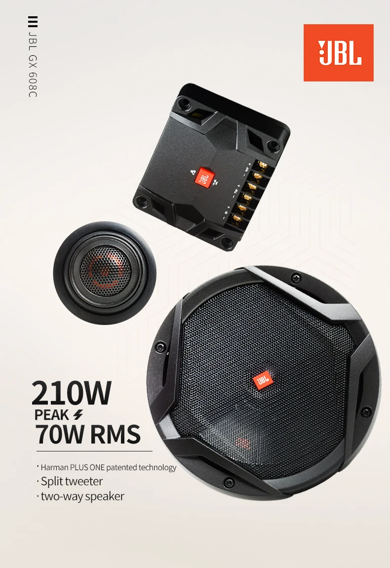1. Rated power 70W and peak power 210W, GX608C belongs to JBL mid-to-high-end level binary speaker set, with high sound resolution and rich sound details.