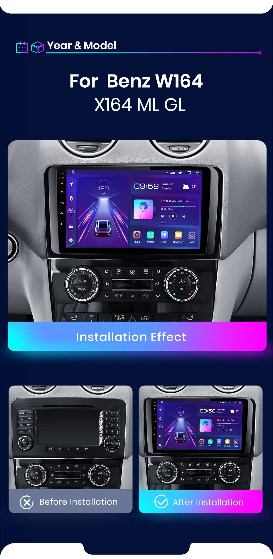 JIUYIN Android 13 Car Radio For Mercedes Benz M-Class W164 GL-Class X164 ML GL 2005-2012 wireless CarPlay Android Auto 2din DVD