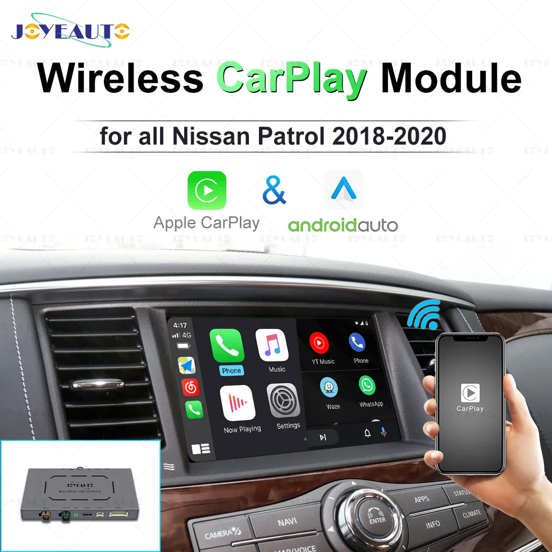 JoyeAuto Wireless Apple CarPlay for Nissan Patrol Y62 Y61 Y60 2020 2019 2018 Android Auto Navigation Car Play Mirroring AirPlay